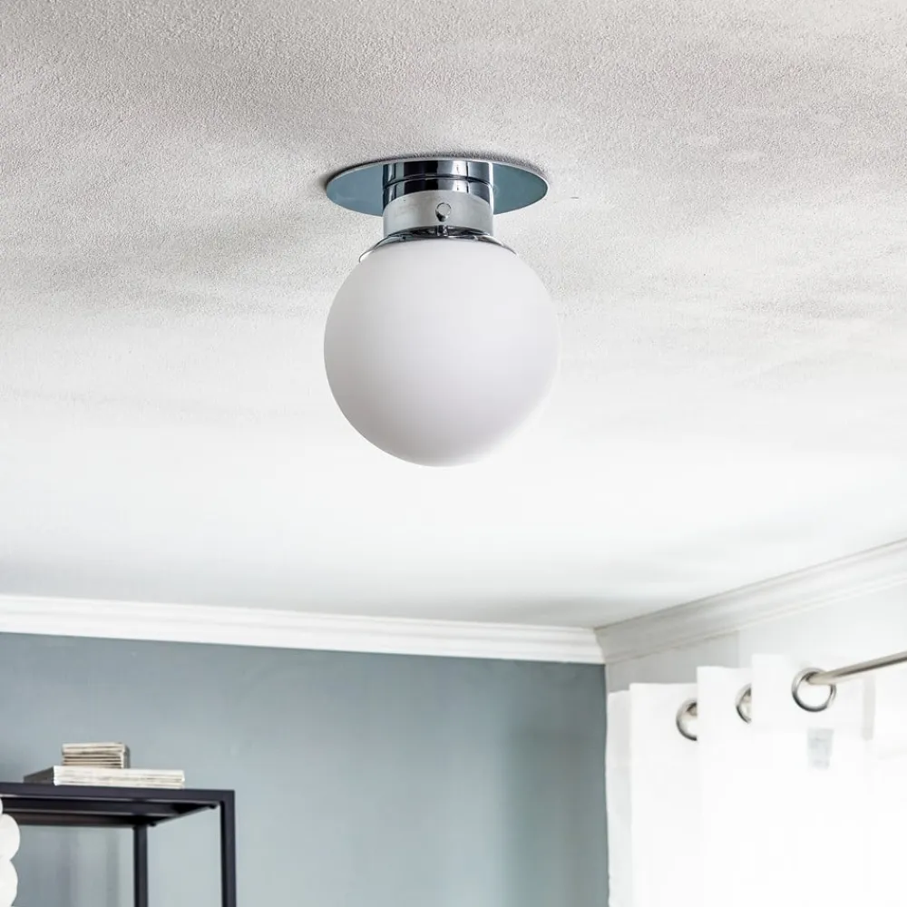 Classic Globe 20 sfærisk loftslampe med IP44Denne dekorative loftslampe scorer med sin klassiske sfæriske form, som kan integreres i næsten enhver indretningsstil. Loftsarmaturet i krom giver armaturet stilfuld eksklusivitet. Med IP44 er denne loftslampe ideel til badeværelser, trappeopgange eller lignende rum.