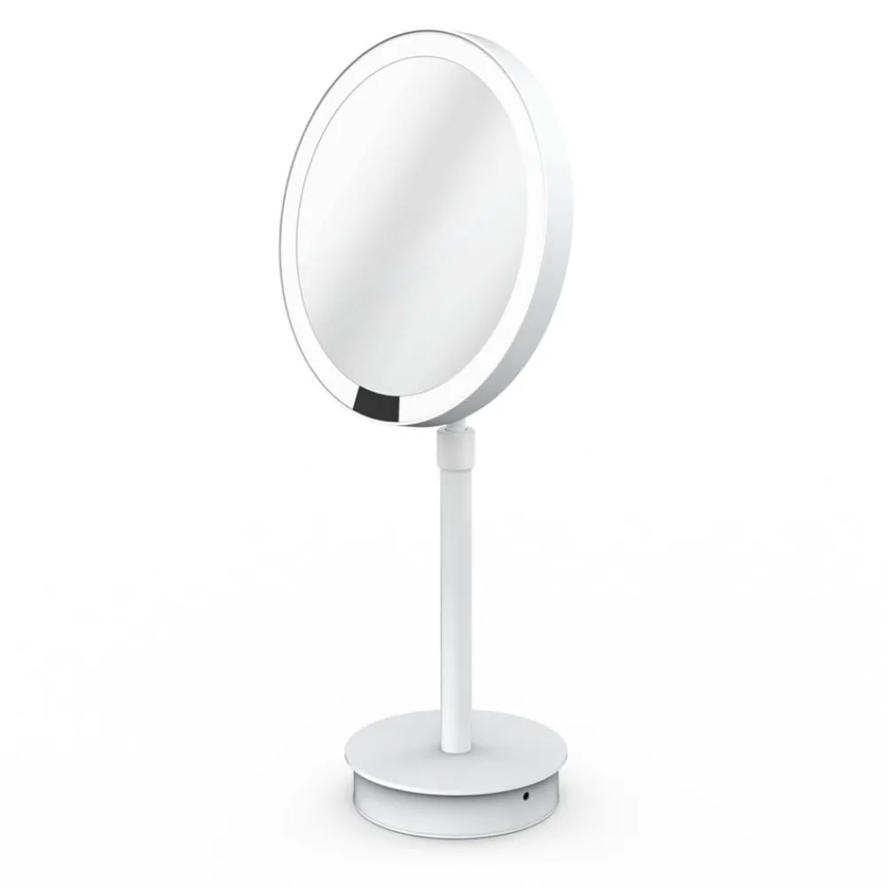 LED-stativkosmetikspejl Just Look Plus SR 7X trinløst dæmpbart, lysfarve justerbar, inkl. sensor LED-stativkosmetikspejlet Just Look Plus SR 7X er kendetegnet ved et slankt og moderne design. Den syvdobbelte forstørrelse i kombination med den trinløst justerbare lysfarve giver et optimalt udsyn.Just Look Plus SR 7X er udstyret med en automatisk sensor, der kan aktiveres og deaktiveres via en kontakt. Den tænder belysningen, når man nærmer sig spejlet, og slukker den automatisk igen efter 15 sekunder, når man bevæger sig væk fra spejlet. På samme måde kan LED-spejlet dæmpes trinløst, hvilket gør det anvendeligt under forskellige lysforhold. Højdejusteringen i kombination med en drejelig og vipbar spejloverflade muliggør en individuel brug af spejlet.- inkl. genopladeligt, udskifteligt batteri- inkl. USB-ladekabel og strømforsyningsenhed- spejloverflade drejelig og vipbar- justerbar i højden fra 38-44 cm