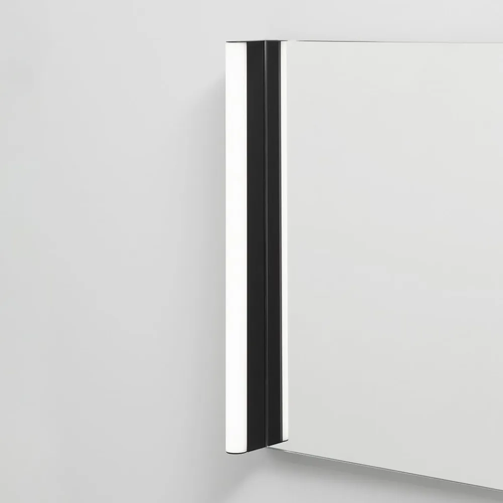 Slank LED-væglampe Slat – perfekt til spejlbelysning LED-væglampen Slat er ideel som lyskilde til højre og venstre eller over og under et spejl på badeværelset eller i entreen. Den er stænktæt i henhold til beskyttelsesklasse IP44 og består af en lang, rektangulær aluminiumskrop med en satinfinish polykarbonatdiffusor på forsiden. Lysstyrken og farvetemperaturen på de integrerede LED’er kan justeres fra 2.700 til 5.000 K ved hjælp af den medfølgende fjernbetjening (inkl. AAA-batterier). Derudover er der et diskret natlys til rådighed, og den sidst valgte indstilling genaktiveres, når der tændes igen (hukommelse).