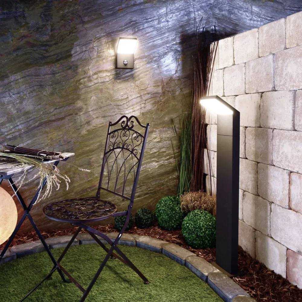 Deko-Light Væglampe Med Sensor|Væglamper>Udendørs LED-væglampe med sensor Tucanae, grå, højde 22 cm, IP54