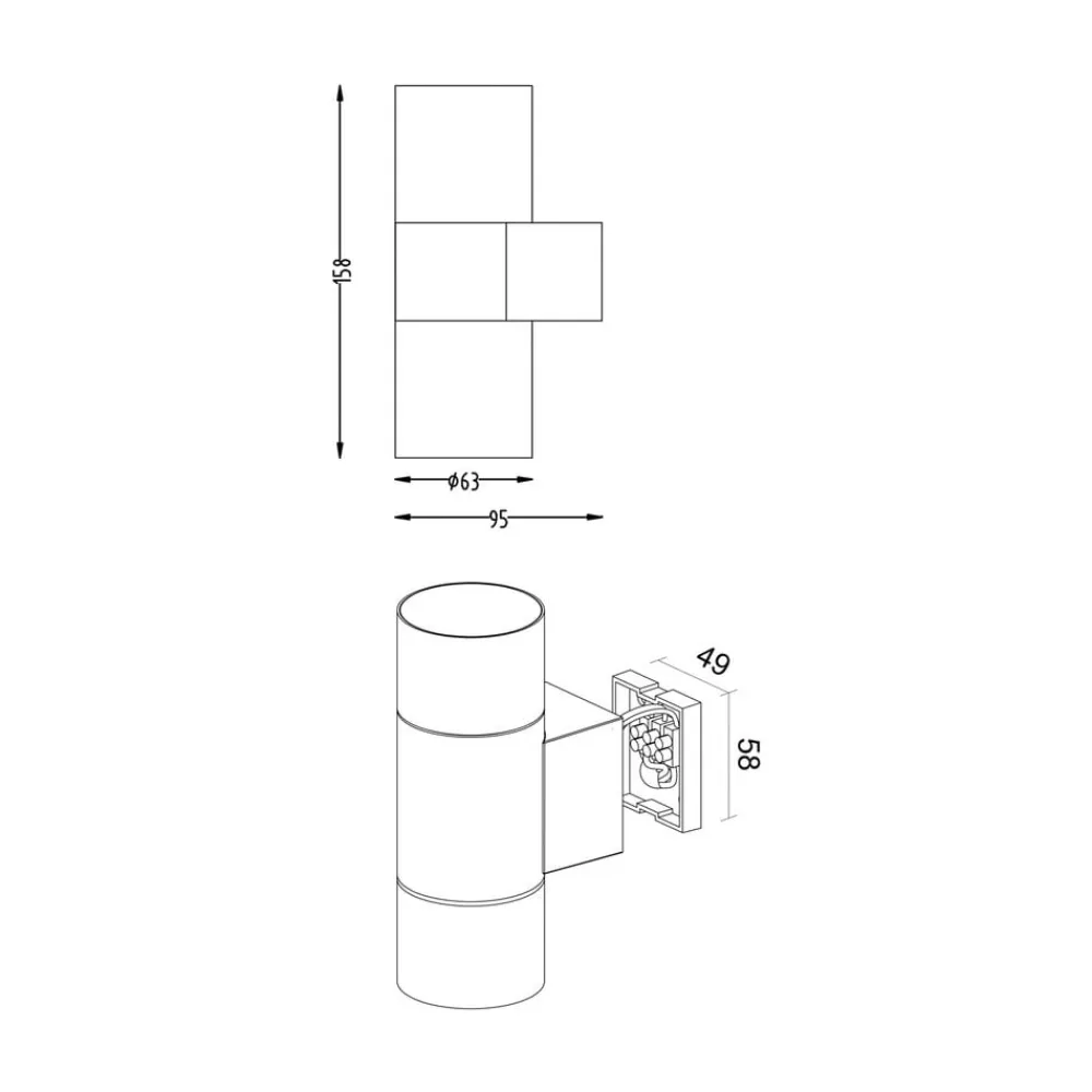 - Ø Lampehoveder 6,3 cm; vægbeslag – bredde 4,9 cm, højde 5,8 cm