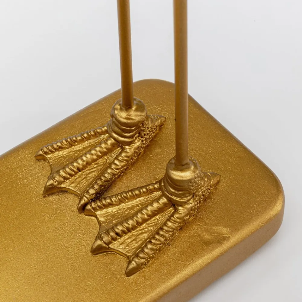 Dekorativ figur Flamingo Love lavet af malet polyresin Så meget kærlighed! De to gyldne flamingoer i guldfarvet lak danner et smukt hjerte med deres hals og næb. Denne romantiske dekorationsfigur er velegnet til soveværelset på natbordet eller i stuen på et skrivebord eller en skænk. Borddekorationen passer ind overalt og får alle til at smile. Dekorationen skaber en særlig smuk gylden farveaccent i rummet. Dette hjertevarme bordtilbehør er også en god gaveidé til din bedre halvdel eller til et bryllup.