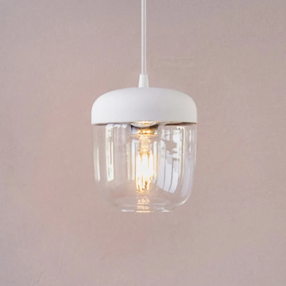 Med pendellampen Acorn, der består af tre dele – organisk formet transparent glas og en delikat kerne der er messingfarvet, bliver dette tydeligt. Acorn egner sig fantastisk til f.eks. at oplyse et spisebord med et blidt skinnende lys, hvilket skaber en stemningsfuld atmosfære.