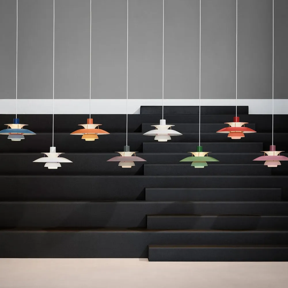 Den tredobbelte skærm, som pendlen er udstyret med, går tilbage til Poul Henningsens design, den velkendte danske designer, der skabte produkter for Louis Poulsen fra 1925 til sin død i 1967. Louis Poulsen er en dansk virksomhed med en lang tradition for fremstilling af designerlamper, som blev udviklet efter princippet om, at “form følger funktion”. Louis Poulsen har produceret typisk skandinaviske belysningsløsninger i over 100 år, og nogle modeller har været tilgængelige i årtier og bliver konstant genudgivet. 2018 markerer 60-året for PH 5’s fødsel. I den anledning er nye farvekombinationer af det klassiske armatur blevet lanceret på markedet.