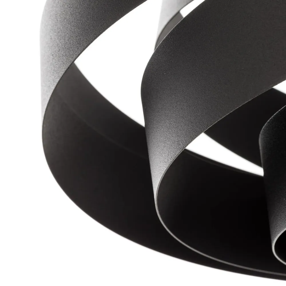 Enestående Vento-loftlampe i sort Moderne design, fantastisk belysning og dekorative lysaccenter – det er, hvad Vento-loftlampen står for, med en skærm, der straks fanger øjet, selv når den ikke er tændt. Skærmen består af spiralformede metalstrimler, der skaber en attraktiv effekt, når lyset skinner gennem revnerne mellem metalelementerne. I neutral sort passer Vento godt sammen med mange indretningsfarver.