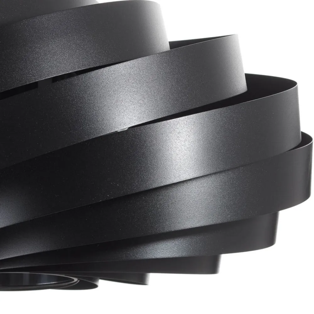 Enestående Vento-loftlampe i sort Moderne design, fantastisk belysning og dekorative lysaccenter – det er, hvad Vento-loftlampen står for, med en skærm, der straks fanger øjet, selv når den ikke er tændt. Skærmen består af spiralformede metalstrimler, der skaber en attraktiv effekt, når lyset skinner gennem revnerne mellem metalelementerne. I neutral sort passer Vento godt sammen med mange indretningsfarver.