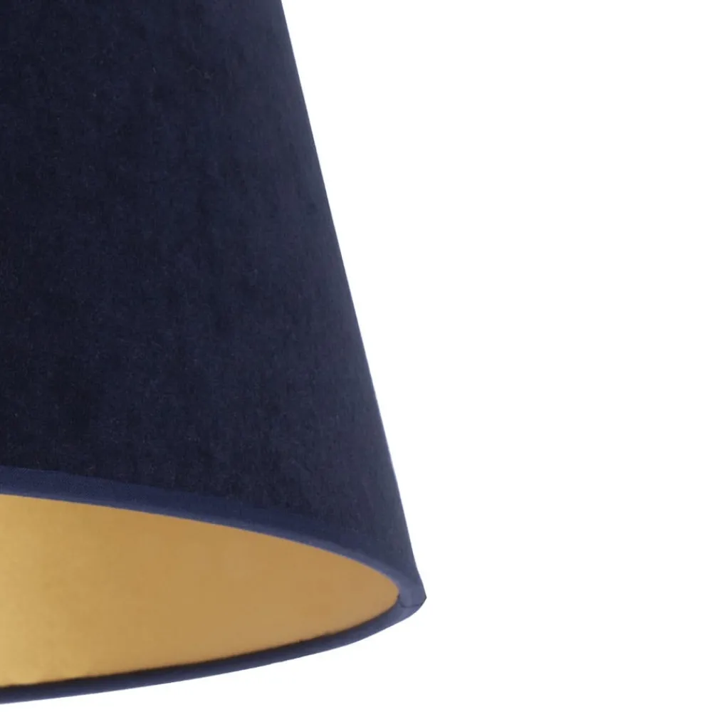 Lampeskærmen Cone imponerer med sin udsøgte materialekombination af ruskind og tekstil, der giver ethvert rum et luksuriøst præg. Den harmoniske farve i mørkeblå og guld skaber en stilfuld atmosfære og sætter elegante accenter. Denne lampeskærm er ikke kun et funktionelt element, men også et dekorativt highlight, der har stor indflydelse på rummets atmosfære.