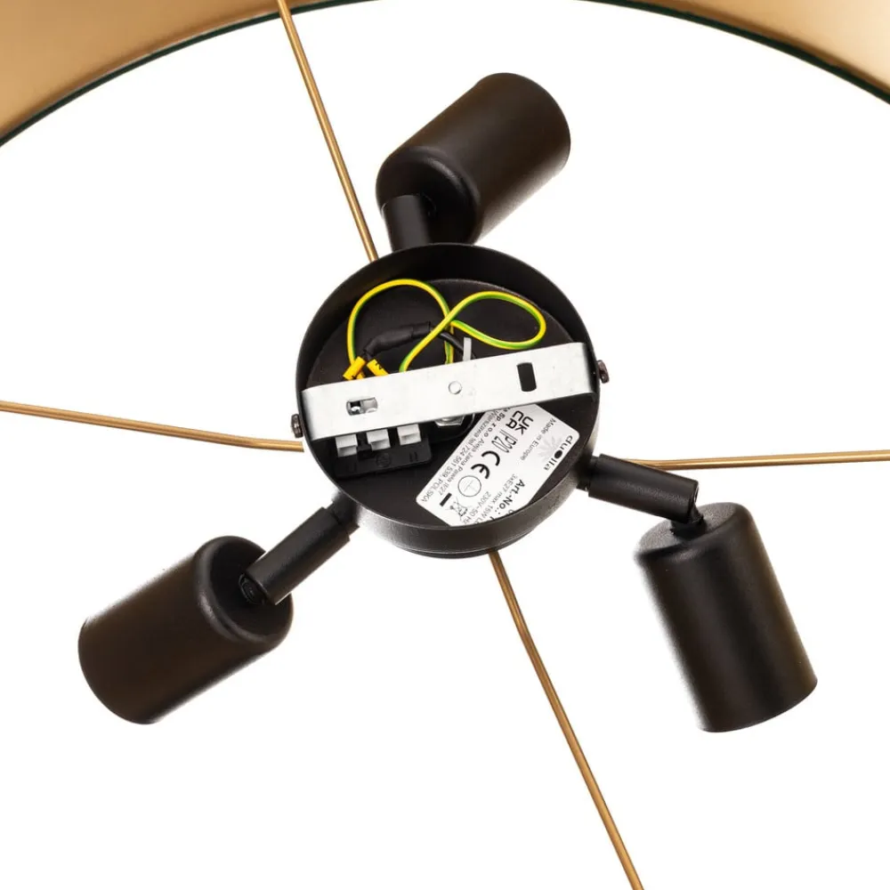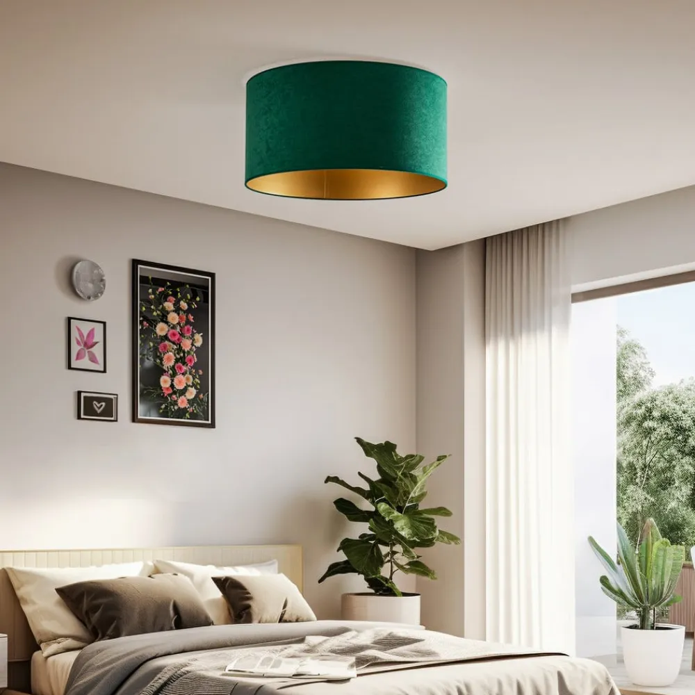 Loftlampen Golden Roller Ø 60 cm i mørkegrøn og guld kombinerer stilfuld elegance med fløjl af høj kvalitet. Samspillet mellem farverne giver ethvert rum en luksuriøs atmosfære, der gør indtryk både i stuen, spisestuen og soveværelset. Lampen er fremstillet i Europa og står for kvalitet og krævende design.