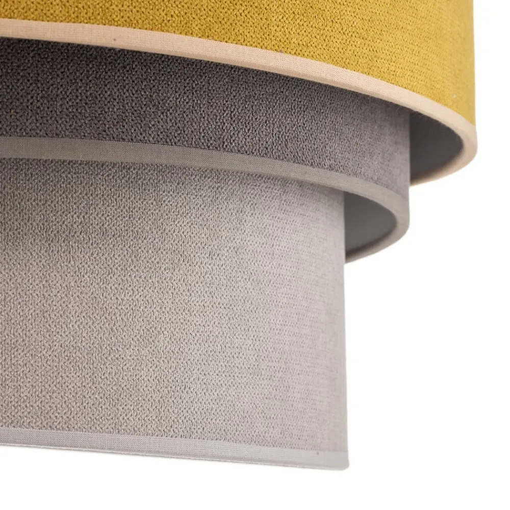 Loftlampen Pastell Trio Ø 45 cm i de harmoniske farver sennep, grå og lysegrå bringer et elegant touch til ethvert rum. Den er fremstillet af højkvalitets velour og giver stuer, entreer, soveværelser og spisestuer en helt særlig atmosfære. Lampen er fremstillet i Europa og overbeviser med sin lokale oprindelse og kvalitet.