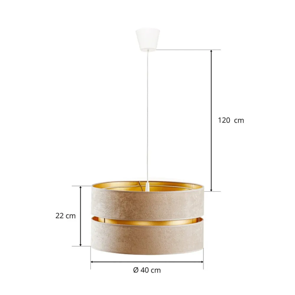 Hængelampen Duo kombinerer moderne design med luksuriøst fløjlsmateriale og sætter stilfulde accenter i ethvert rum. Med sin elegante kombination af beige og guld passer den harmonisk ind i forskellige indretningsstilarter og giver stuen, køkkenet, soveværelset eller spisestuen en særlig atmosfære. Lampen er ikke kun et optisk højdepunkt, men også funktionel takket være muligheden for at dæmpe den via en ekstern dæmper, hvilket gør det muligt at tilpasse lysintensiteten individuelt.