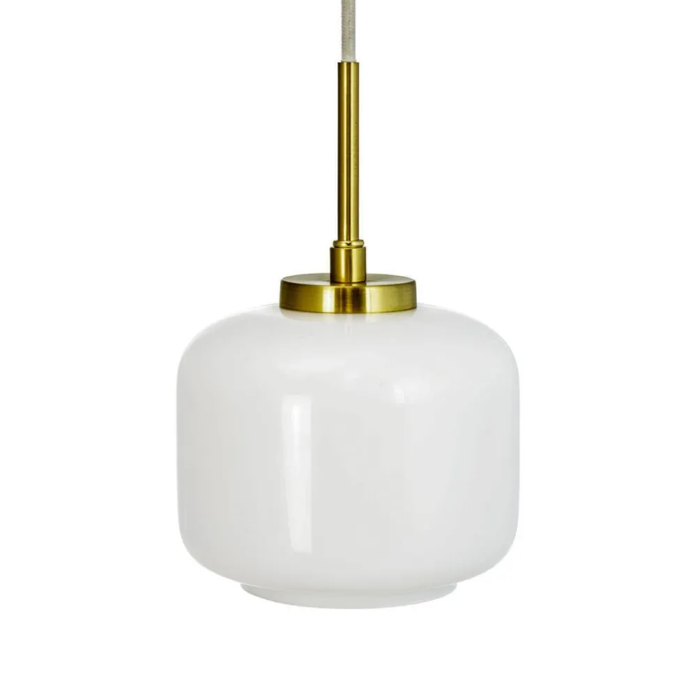 Arp hængelampe med messingfarvet ophæng og stor glasskærm Arp hængelampen kombinerer skandinavisk design med et strejf af elegance og skaber en atmosfære, der er både inspirerende og hyggelig. Dens messingfarvede krop og glasdesign i høj kvalitet gør den til et blikfang i enhver stue, spisestue eller køkken. Selvom der ikke medfølger en dæmper, kan lampen nemt tilsluttes en ekstern dæmper for at regulere lyset efter individuelle præferencer.