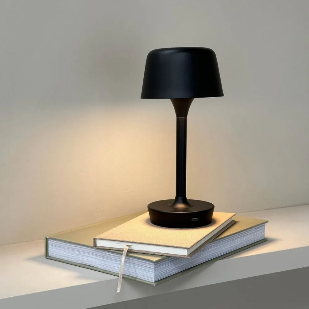 Flow genopladelig LED-bordlampe til mobil brug Flow genopladelig LED-bordlampe kombinerer funktionalitet med nordisk minimalisme. Den kan bruges praktisk talt overalt indendørs, hvor der ikke er en stikkontakt i nærheden. Betjening: Lyset tændes eller slukkes med et enkelt tryk på knappen på siden af lampefoden – 3 justerbare lysstyrkeniveauer Et USB-C-kabel medfølger, men en adapter til stikkontakten medfølger ikke.
