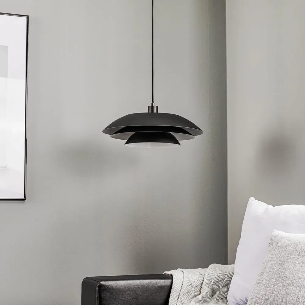 Skærmen på DL-pendellampen er lavet af lakeret metal med en mat finish. Tre elementer i forskellige størrelser, der er formet som plader, er anbragt inden i hinanden for at danne en skygge, hvorfra lyset ikke kun slipper ud gennem åbningen i bunden, men også gennem rummene rundt om. På denne måde oplyser DL pendellampen perfekt en bordflade direkte og samtidig rummet generelt. Det smukke udseende med et skandinavisk design gør armaturet til en passende lysdispenser over spisebordet eller køkkenbordet i mange indretningsstile, som vil være en kilde til glæde i lang tid.