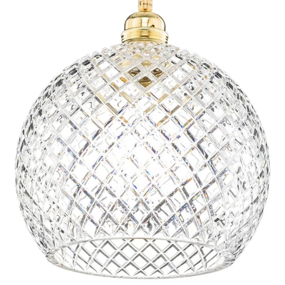 Det håndblæste glashus af krystalglas er specielt i designet af Rowan-hængelampen. Dette gør det muligt for lyset at oplyse rummet lyst på alle sider. fatning og tekstilkablet af høj kvalitet, der er forsynet med en skinnende guldfarve og afrunder designet på en ædle måde, danner en flot kontrast. Med sit klassiske udseende og enkle design er Rowan pendlen ideel til at supplere mange forskellige leveformer. Uanset om det installeres individuelt eller i grupper, hvad enten det er i hjørner eller over bordet, tilbyder Rowan-lampen altid et dekorativt blikfang.