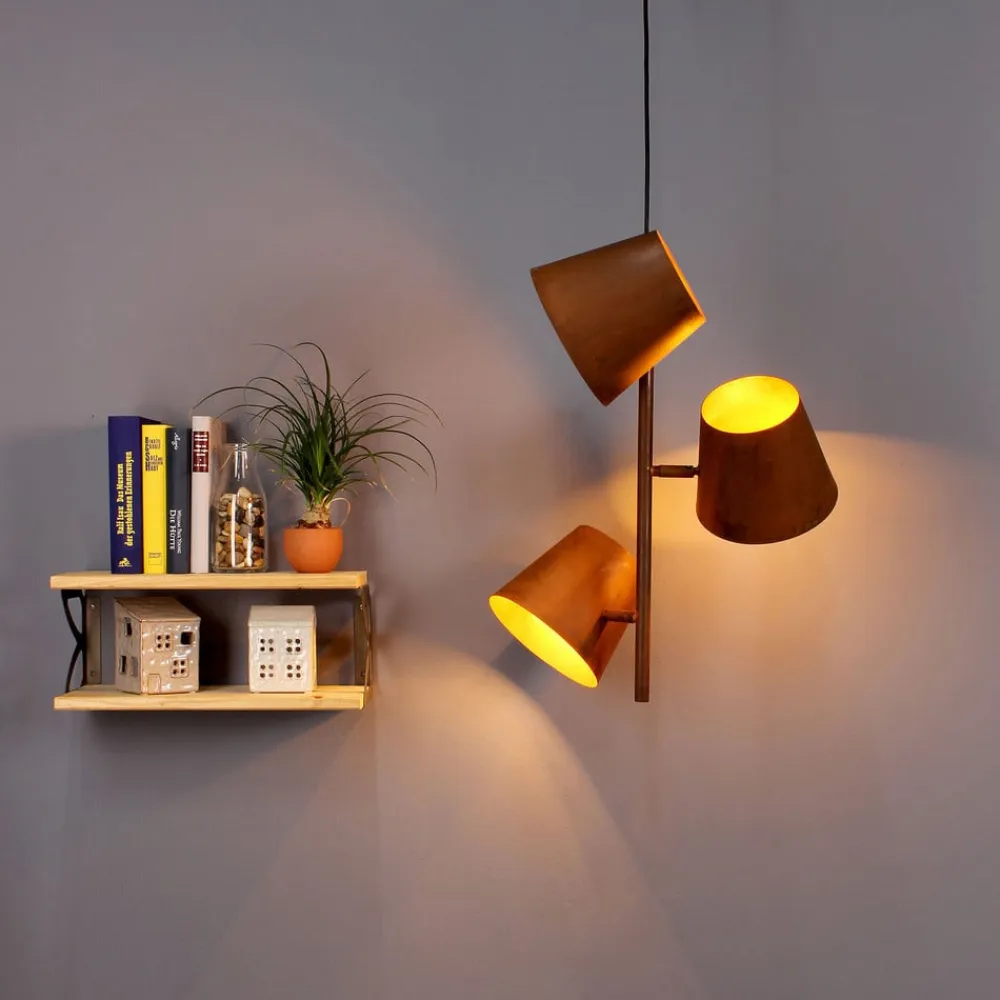 De tre pære Colt pendler giver både direkte, nedadgående og indirekte belysning via loftet. Skærmene, der er fastgjort til en central stang i forskellige højder og retninger, kan justeres individuelt efter ønske, for eksempel for at justere lyset til bordets størrelse. Med sin ældede finish kommer Colt til sin ret i både moderne og industrielle faciliteter.