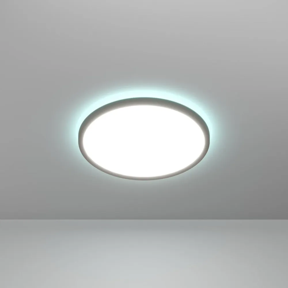Rovito-Z LED-loftslampe, fladt design og smart styring via app og stemme Med farvet og hvidt lys tilbyder den flade Rovito-Z LED-loftslampe en række forskellige belysningsmuligheder, afhængigt af humør og tidspunkt på dagen. De integrerede, dæmpbare LED’er lyser klart og jævnt og giver en solid omgivelsesbelysning. Men Rovito-Z kan ikke kun monteres i loftet, men også som en simpel væglampe. Lyset styres smart via en passende app, en kompatibel stemmeassistent eller også klassisk med en passende fjernbetjening. Funktioner / kompatibilitet: – kan styres med den gratis AwoX HomeControl-app – kompatibel med smart home-systemer fra andre producenter, der bruger ZigBee 3.0 – direkte forbindelse med Amazon Echo og Google Home mulig – øget rækkevidde takket være ekstra Bluetooth mesh – kompatibel med alle elementer i EGLO connect-c Bluetooth-serien – kan styres med en passende fjernbetjening, selv uden internetadgang (se tilbehør)