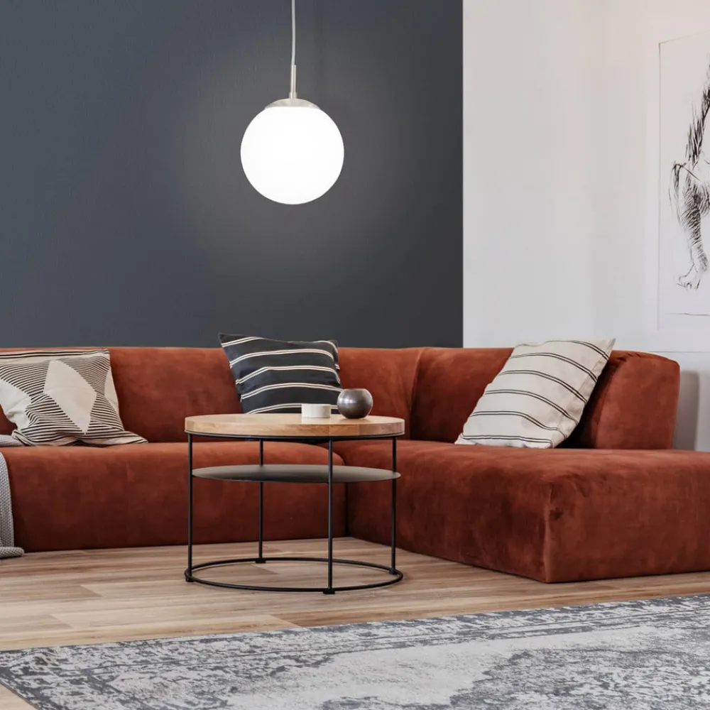 Rondo pendellampe sørger for en jævn og harmonisk belysning i stuen eller entreen. Den hvide glasskærm sørger for lyst lys og udfyldes af et ophæng i mat nikkelfinish. På grund af den diskrete udformning passer pendellampen Rondo ind i de fleste indretningsstile.