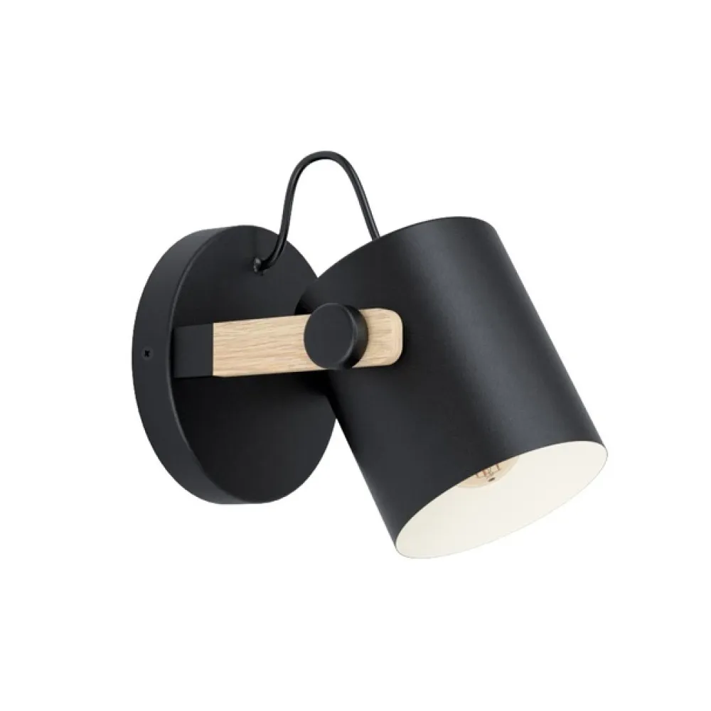 Sort Hornwood-væglampe af stål og træ Hornwood-væglampen er holdt i klassisk sort og runde former. Lampeskærmens holder i trædesign skiller sig ud som en lille detalje. Den cylindriske lampeskærm er forbundet med lampens base ved hjælp af stivere af træ og kan justeres let med to mindre skruer. Den sorte stålskærm er cremefarvet på indersiden, så lyset kommer endnu mere til sin ret. På grund af lampens åbne design giver den optimal spotbelysning.