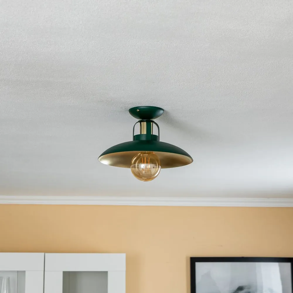 Loftlampen Felix kombinerer industrielt design med en elegant farvekombination af grøn og guld. Den er fremstillet af højkvalitetsmetal og imponerer med sin robuste konstruktion og æstetiske udseende. Denne lampe er ikke kun et optisk højdepunkt, men også funktionelt alsidig. Uanset om det er i stuen, soveværelset, entreen eller spisestuen – loftlampen Felix passer perfekt ind i forskellige rumkoncepter og giver ethvert rum en særlig atmosfære.