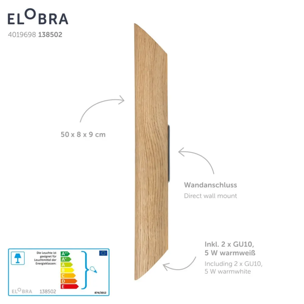 Lampeskærmen på det elegante Colombia LED-væglampe er lavet af træ og imponerer med sit minimalistiske, naturlige og ret enkle look. Lys dukker op på begge sider opad og nedad, hvilket fremkalder smukke kegler af lys. Som en væglampe går Colombia videre til et smukt dekorativt og belysningsobjekt, som kan bruges i næsten enhver livsstil. To GU10-lamper bruges som lyskilde, som er inkluderet i leveringsomfanget og skaber en hyggelig atmosfære med en behagelig varm hvid.