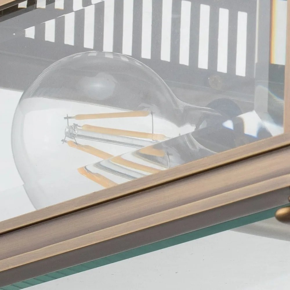Antikt designet loftslampe til udendørs brug Holborn er en meget æstetisk designet loftslampe lavet af robust messing til udendørs brug, såsom den overdækkede terrasse. Det klare glas giver frit udsyn til de anvendte pærer (medfølger ikke), og derfor anbefales det at bruge dekorative glødepærer eller rustikke lamper. – eksternt dæmpbar