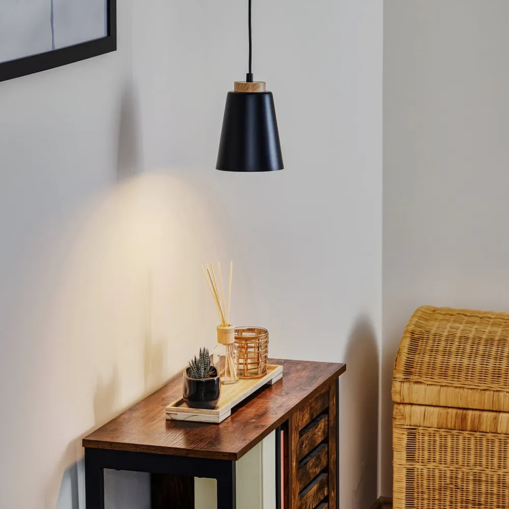 Hængelampen Bolero 1 forener moderne design med materialer af høj kvalitet og sætter stilfulde accenter i ethvert rum. Fremstillet af robust stål og lyst træ passer denne lampe med 1 lyskilde perfekt ind i moderne stuer og spisestuer. Den kontrastrige farve i sort og lyst træ understreger det elegante look og skaber en harmonisk atmosfære.