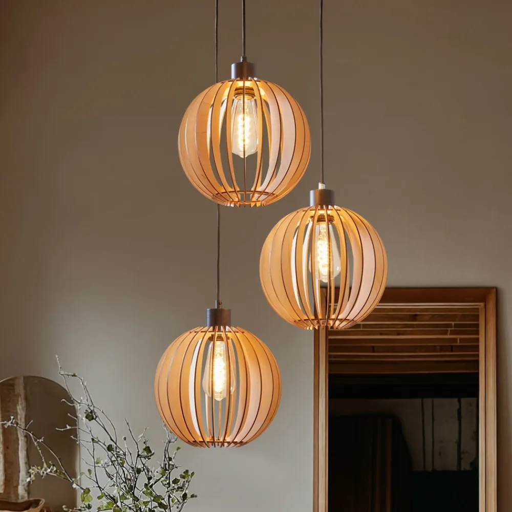 3 lyskilder hængelampe Clay med rund baldakin og skærme af birkespånplade
