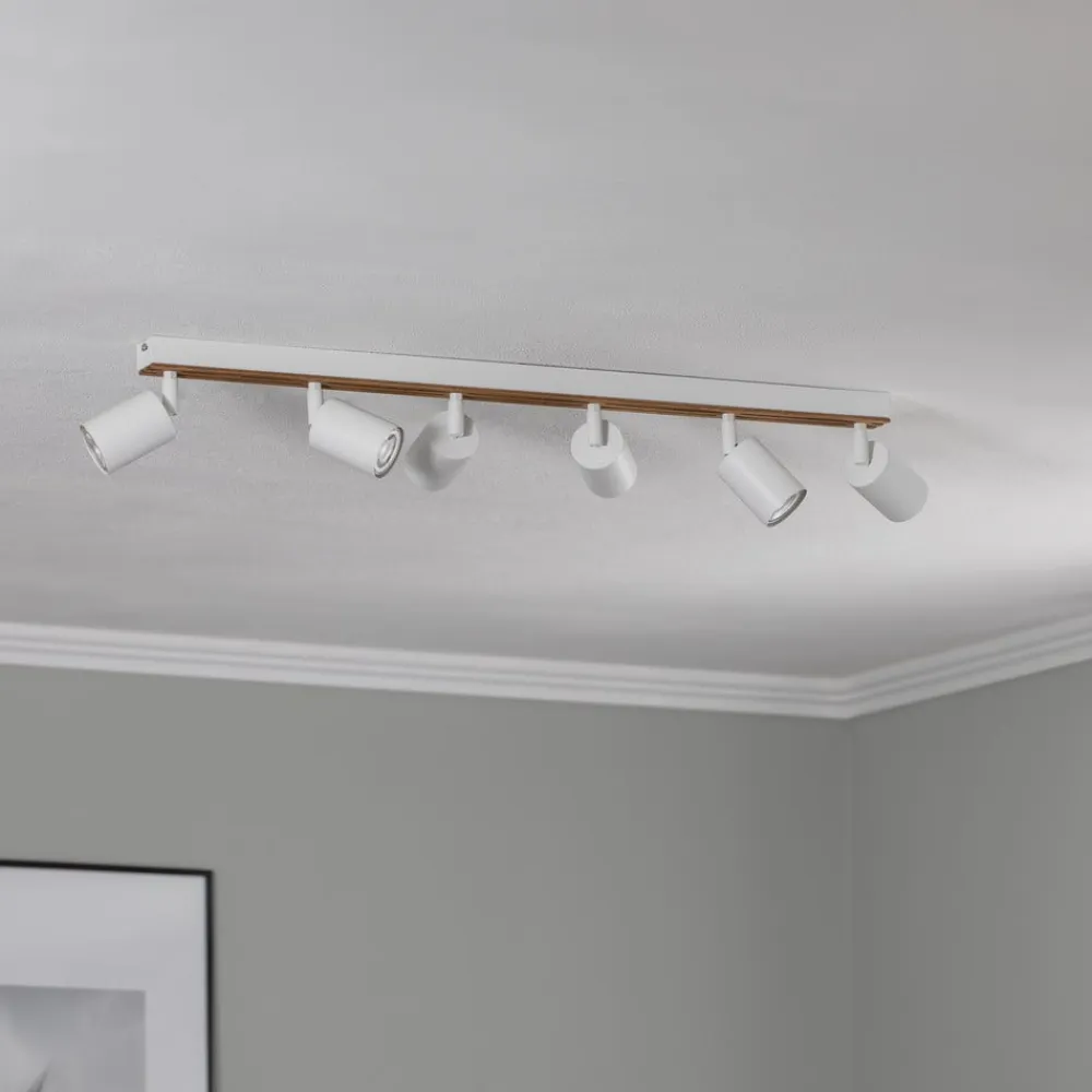 Envostar Tino loftspot forener elegancen af hvidt stål med den naturlige varme fra lyst træ. Denne lampe med 6 lyskilder er en fleksibel belysningsløsning til forskellige boligområder som stuer, entreer og soveværelser. Muligheden for dæmpning via en ekstern dæmper gør det muligt at tilpasse lysintensiteten individuelt for at skabe den ønskede atmosfære.