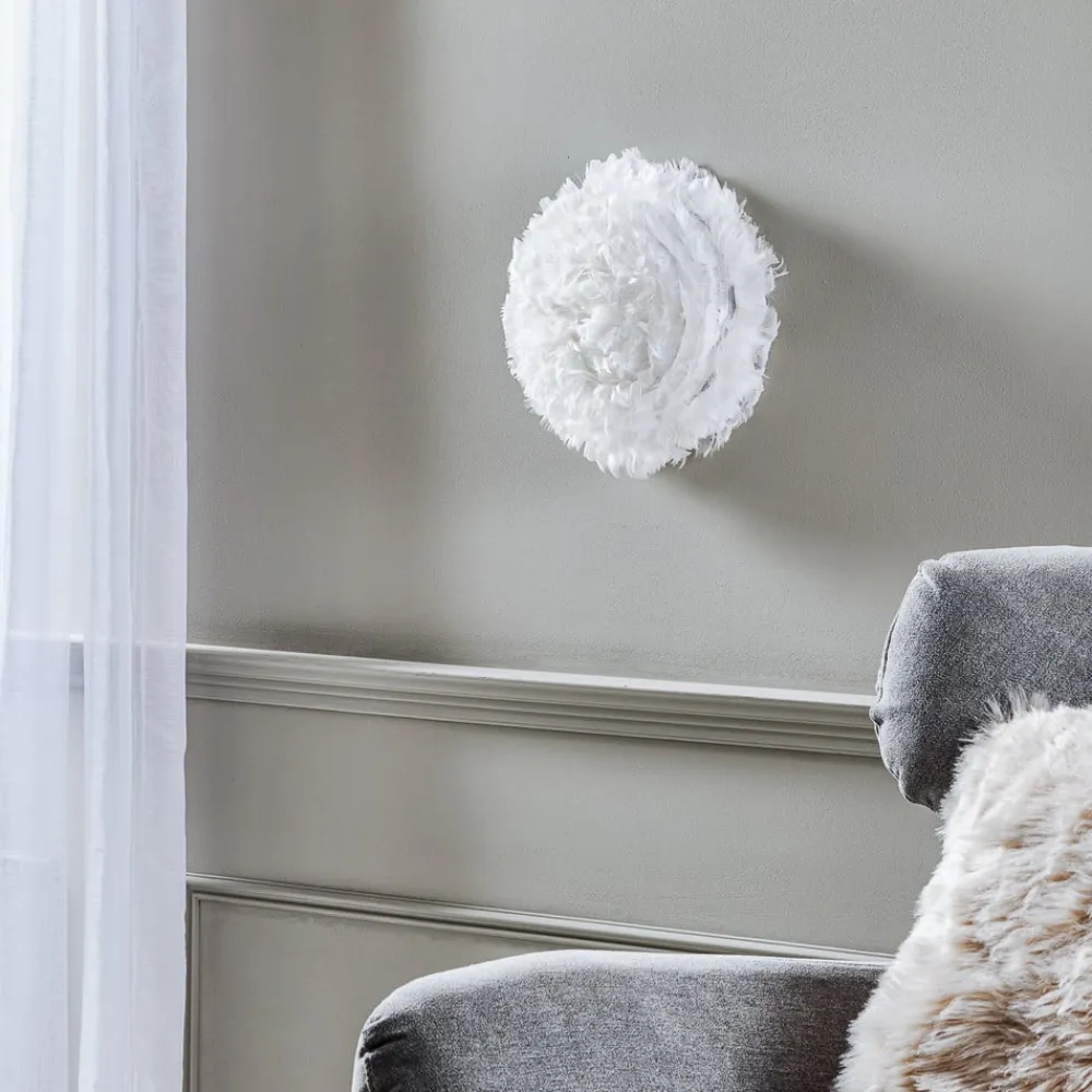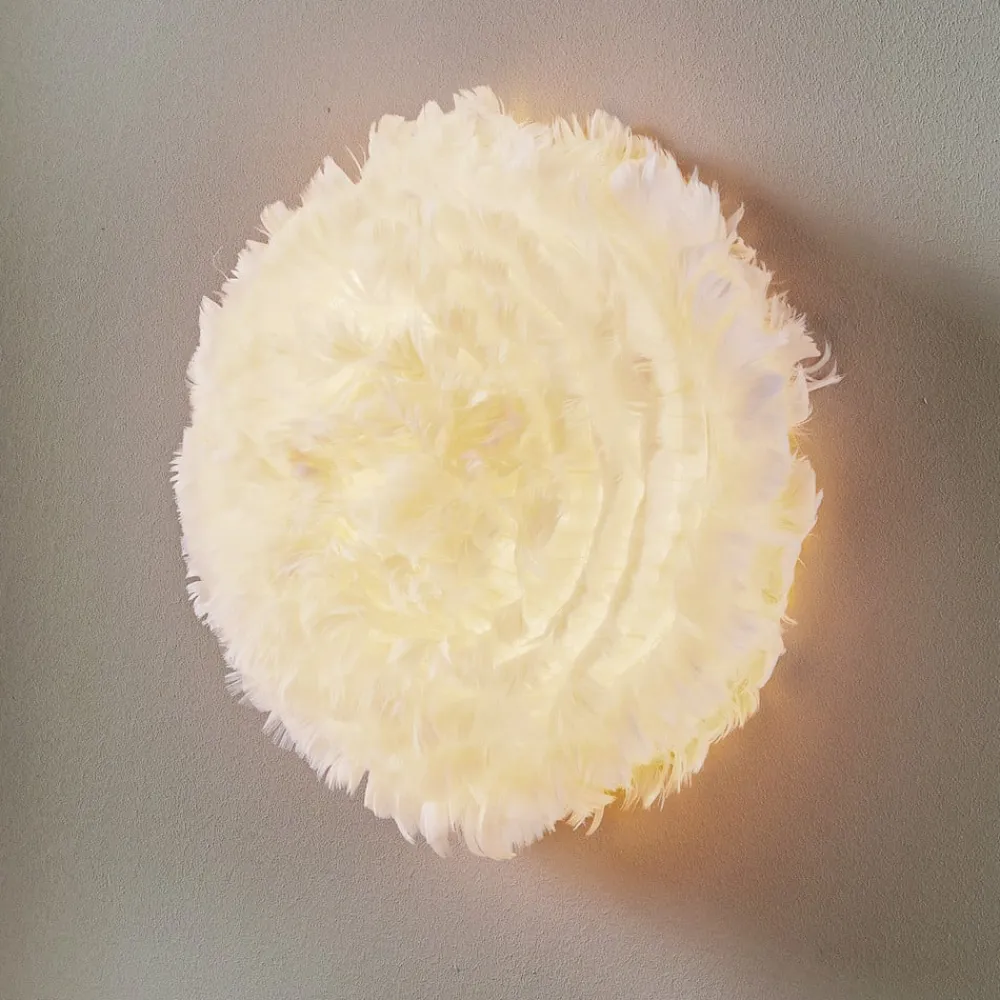 Eos Up lampen fra den danske UMAGE er lavet af ægte fjer. Med deres naturlighed og blødhed sikrer disse et særligt dekorativt look og en meget behagelig lysatmosfære. Eos Up mini væglampe er en speciel iøjnefaldende, især til soveværelser, stuer eller børneværelser. Her bruges ikke fjer fra levende dyr.