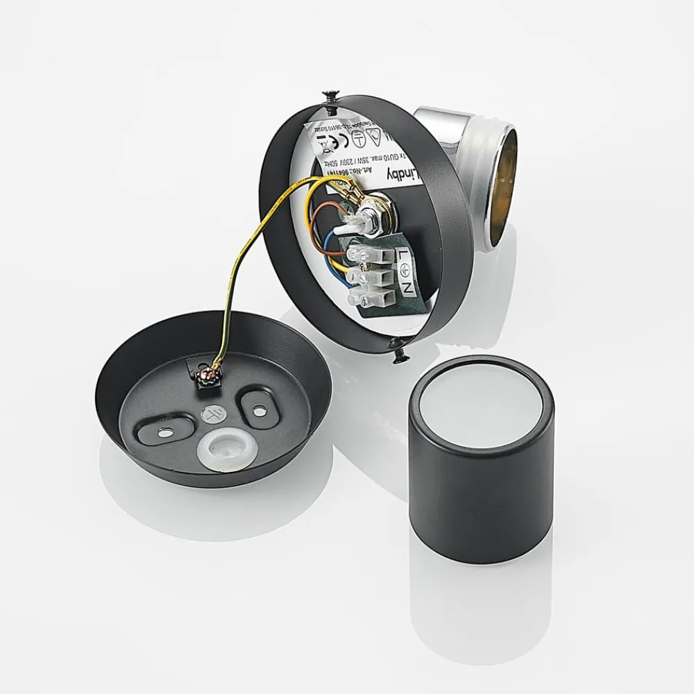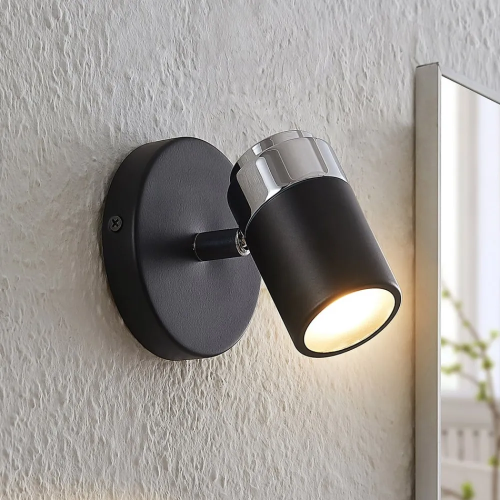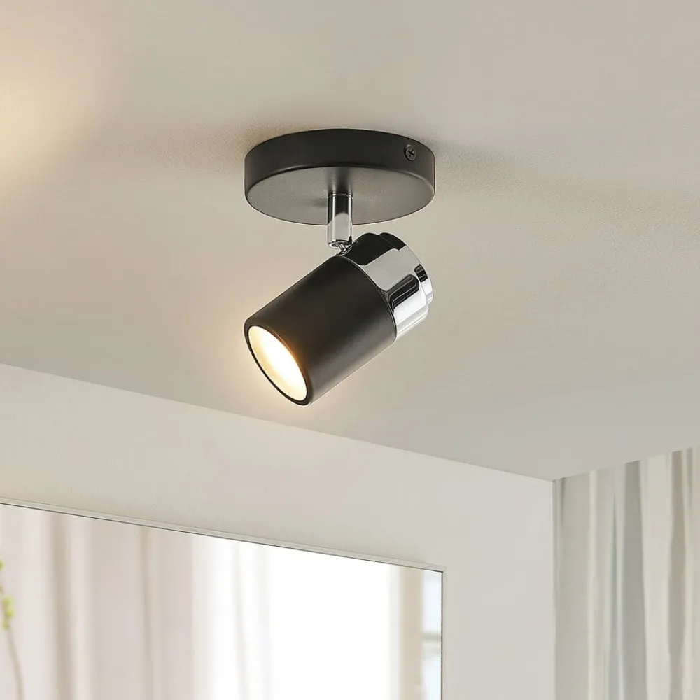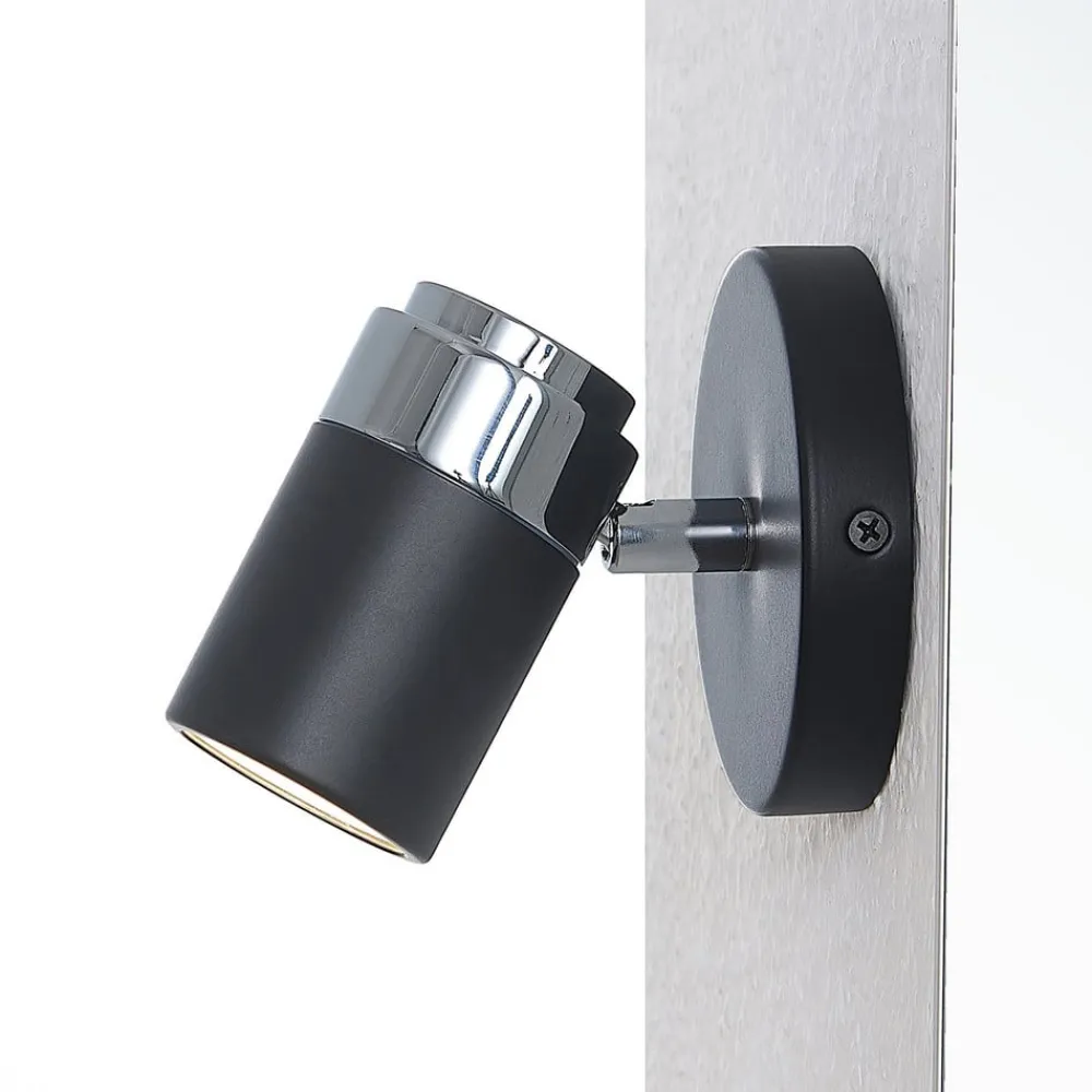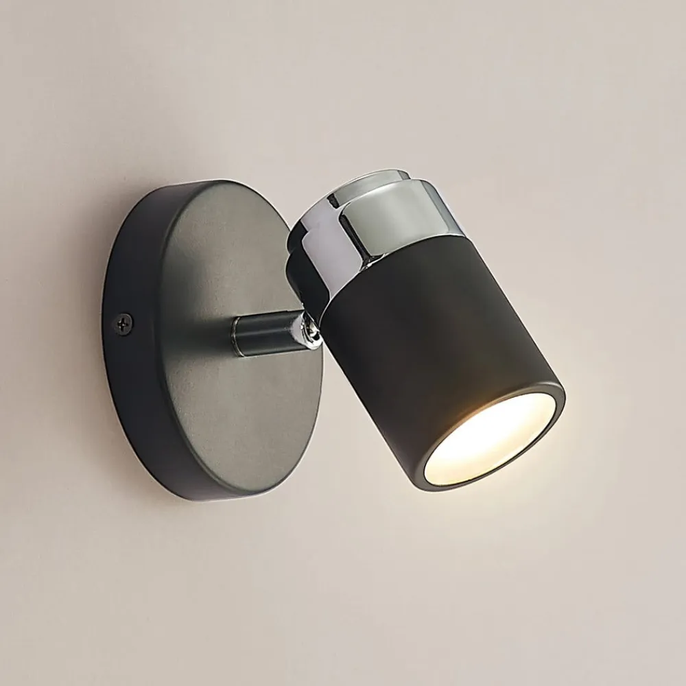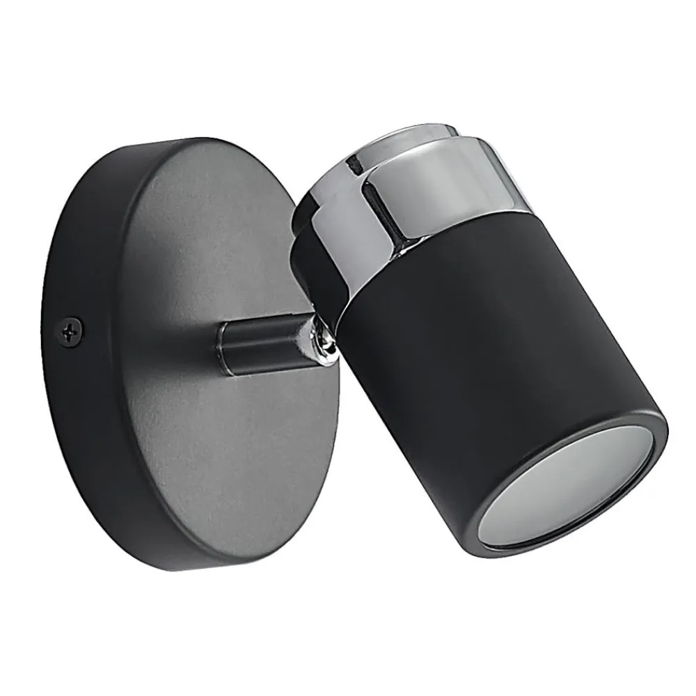 Esami spotlight scorer med sit elegante design og kan integreres i mange indretningsstile. Både den runde monteringsplade og den cylindrisk formede spotlight er lavet af metal og er dækket af en sort finish. Spotlampen kan justeres ubesværet i sin position, så bestemte områder i rummet kan belyses målrettet. Takket være IP44-beskyttelsen er den velegnet til fugtige rum og kan derfor også monteres på badeværelset.