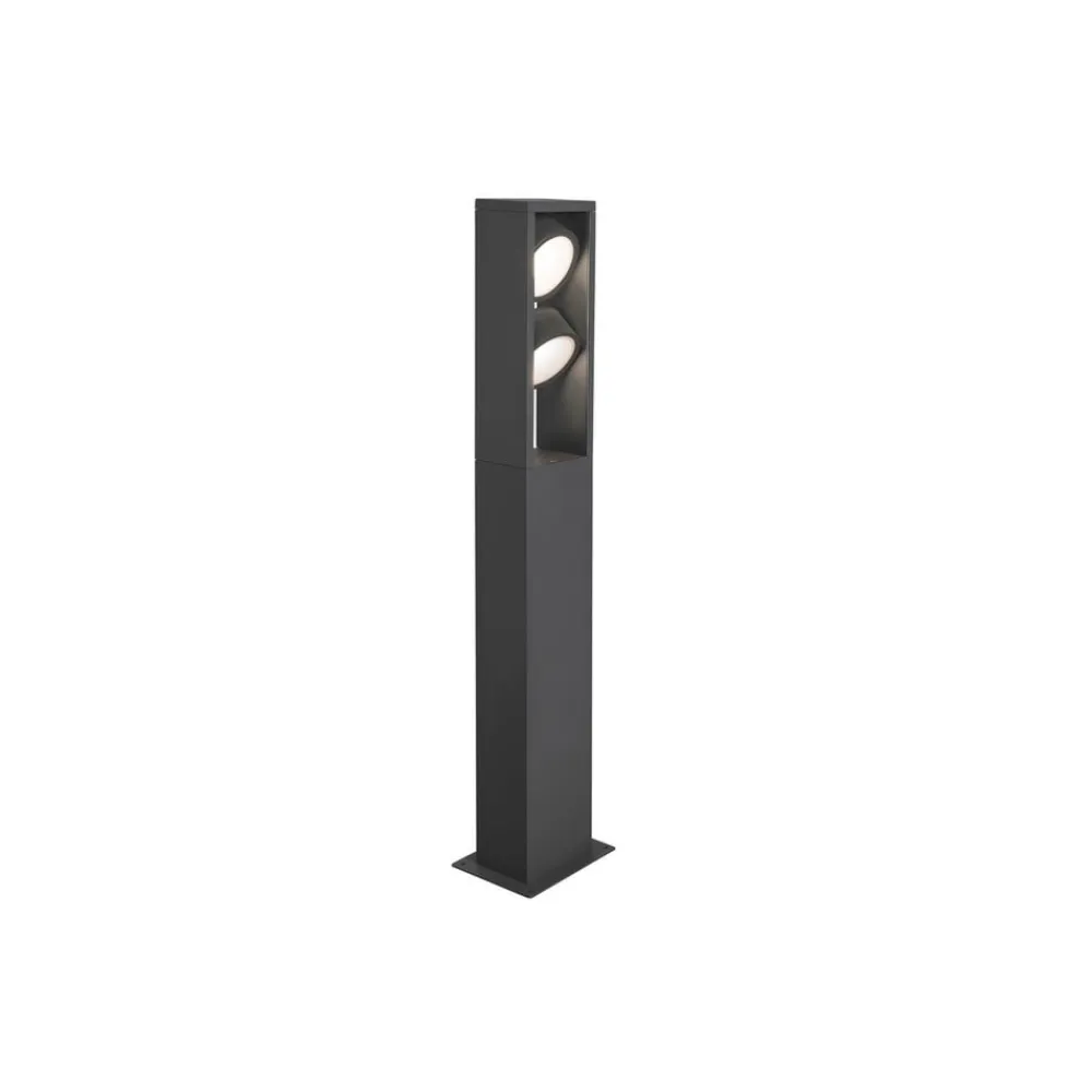 Antracitfarvet Eskina Frame 75 LED-vejlampe – 2 lyskilder Eskina Frame LED-vejlampen imponerer med sit allround vellykkede design. De populære udendørslamper i Eskina-serien tilbyder nu endnu flere anvendelsesmuligheder i designvarianten Frame. Den antracitfarvede Eskina Frame gør en stilfuld figur i ethvert udendørs område. De drejelige lampehoveder sikrer en fleksibel justering af lysudstrålingen. Takket være kapslingsgraden IP65 er LED-vejlampen Eskina Frame 75 optimalt beskyttet mod vind og vejr. Derudover kan farvetemperaturen og dermed lysfarven ændres fleksibelt før installationen ved hjælp af CCT-kontakten, der er indbygget i armaturet. Eskina Frame leveres med løse kabler; der kræves en tilslutningsboks for at kunne betjene den.