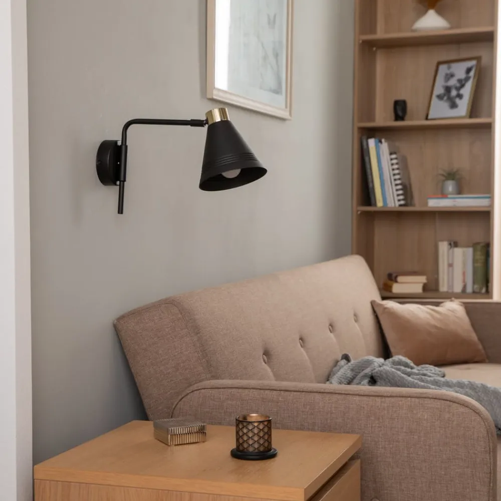 Væglampe Avalone forener tidløs elegance med høj kvalitet. Den er fremstillet af robust metal i de elegante farver sort og messing og sætter stilfulde accenter i ethvert rum. Kombinationen af disse materialer giver lampen ikke kun et tiltalende udseende, men også en bemærkelsesværdig holdbarhed. Uanset om det er i stuen, soveværelset eller spisestuen, passer Avalone harmonisk ind i forskellige indretningsstilarter og skaber en behagelig lysstemning.