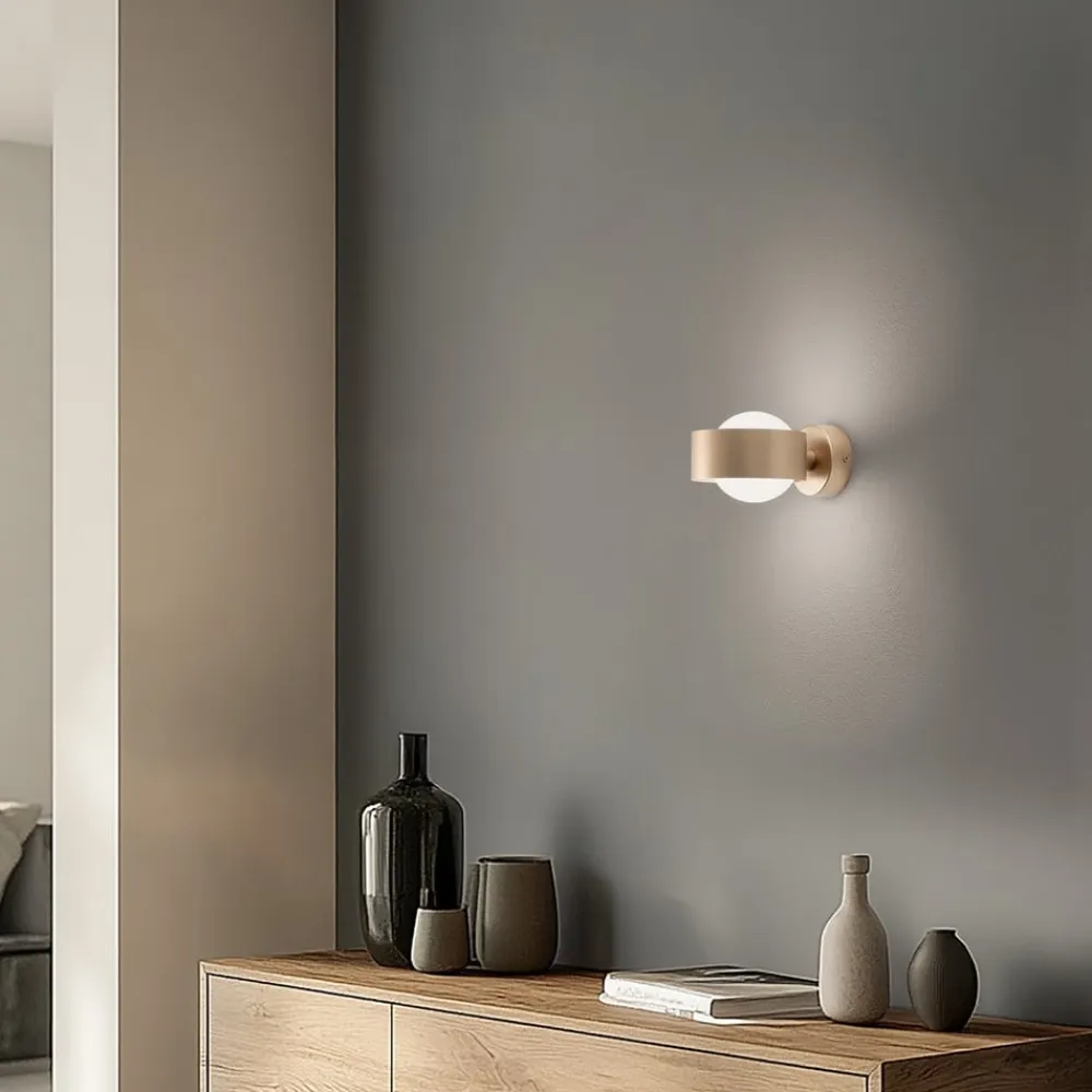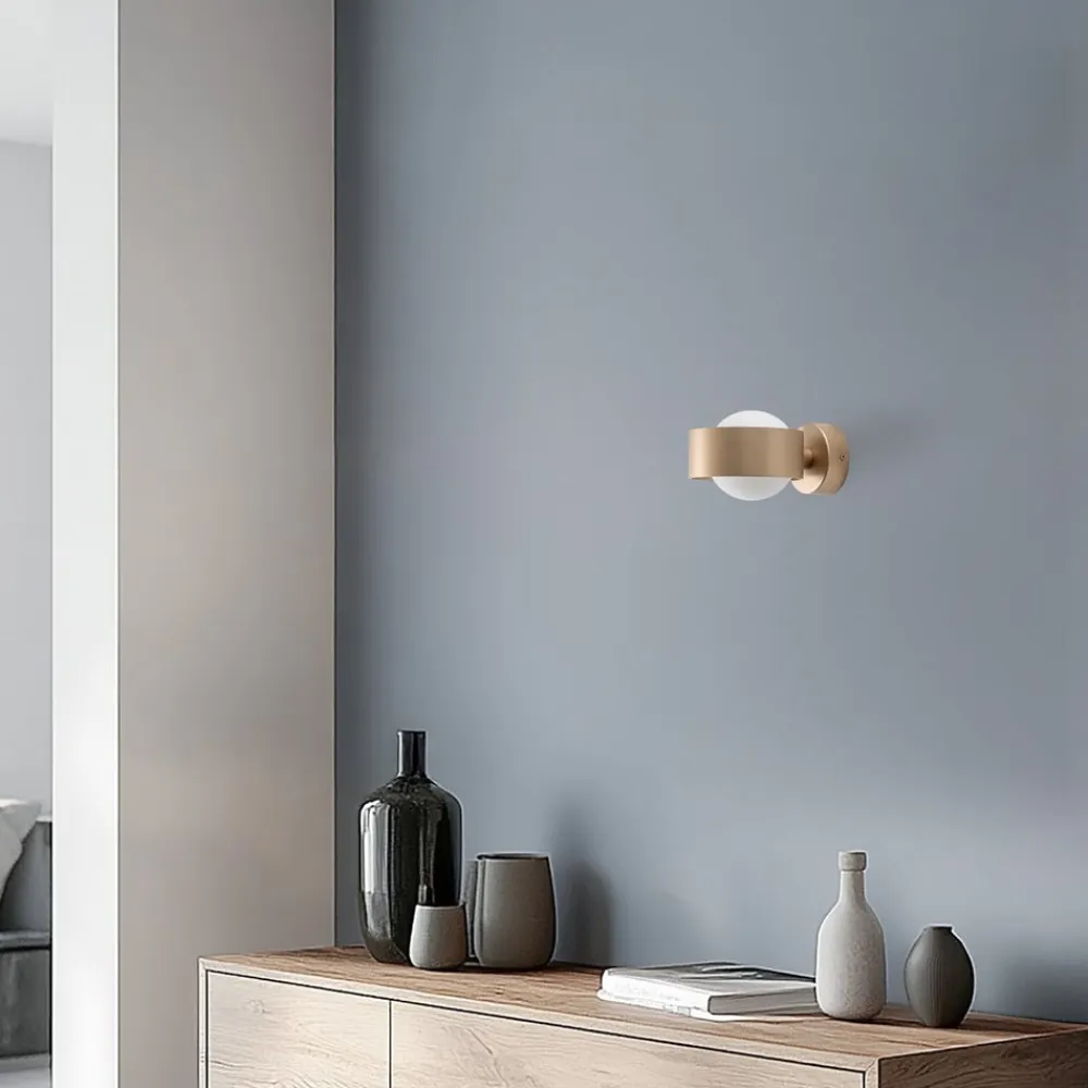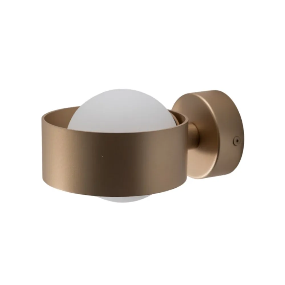 Væglampe Mado kombinerer moderne design med materialer af høj kvalitet og er fremstillet af metal og glas. Kombinationen af opal hvidt glas og messingfarvet metal giver lampen en tidløs elegance, der kan integreres problemfrit i forskellige indretningsstilarter. Særligt værd at fremhæve er muligheden for dæmpning via en ekstern dæmper, hvilket giver fleksibel justering af lysintensiteten og dermed den rette belysning til enhver stemning.