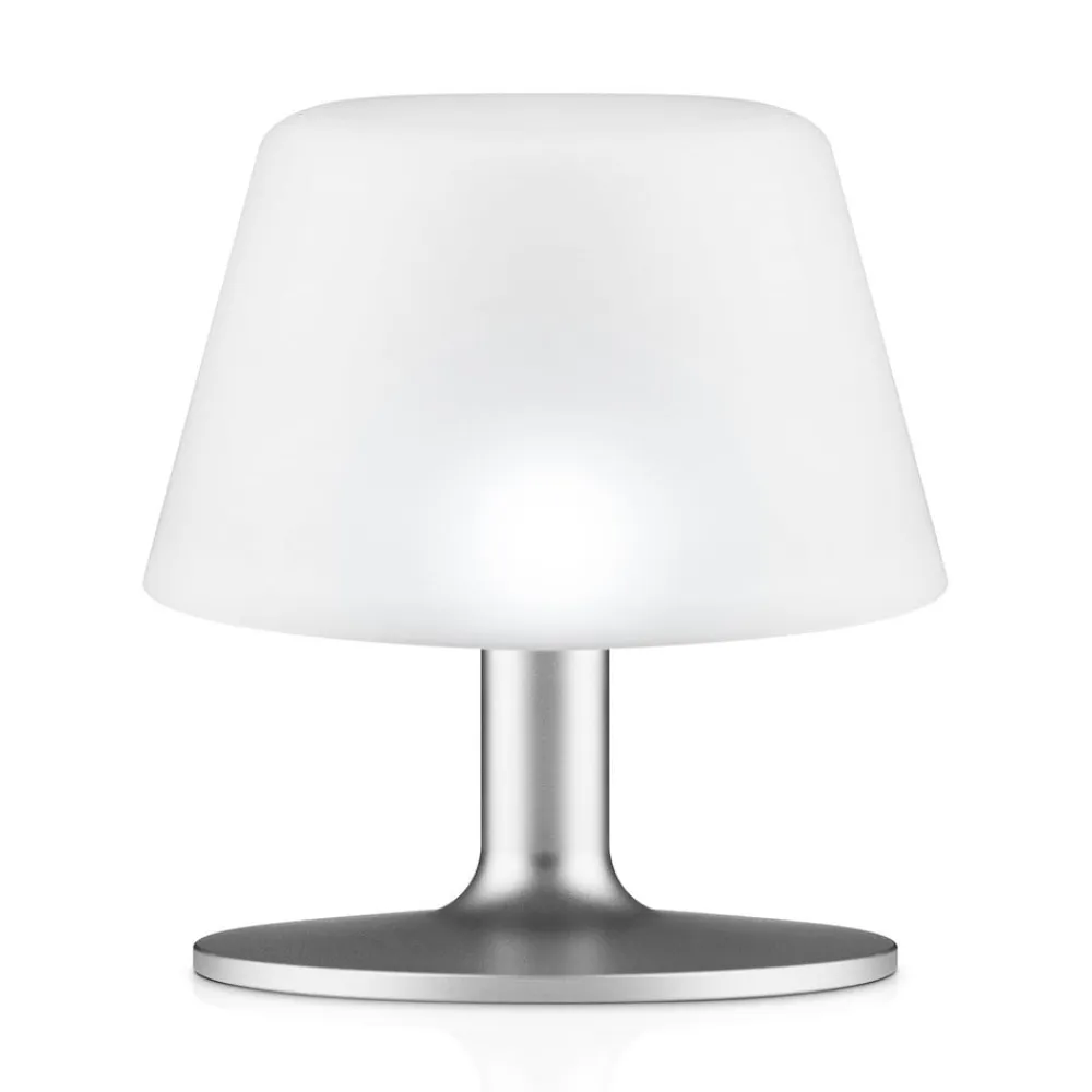 Moderne LED-solbordslampe SunLight med skumringsensor Uanset om det er til at fremhæve en væg eller til stemningsfuld belysning af havebordet – LED-solbordslampen SunLight giver et behageligt varmt lys overalt. Den har en skærm af matteret glas og en lampefod i aluminium, designet er klassisk og moderne. Inde i skærmen er der ud over en effektiv LED-enhed også et solcellemodul, der forsyner det integrerede batteri med solenergi i løbet af dagen. Dette gør det muligt at drive armaturet på en omkostningseffektiv og klimavenlig måde, mens den indbyggede skumringssensor sørger for, at lyset tændes og slukkes automatisk. – med skumringsføler – inkl. genopladeligt litiumbatteri