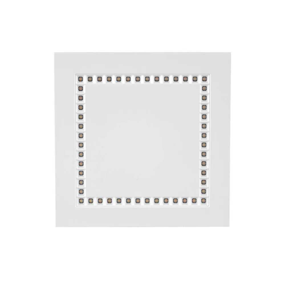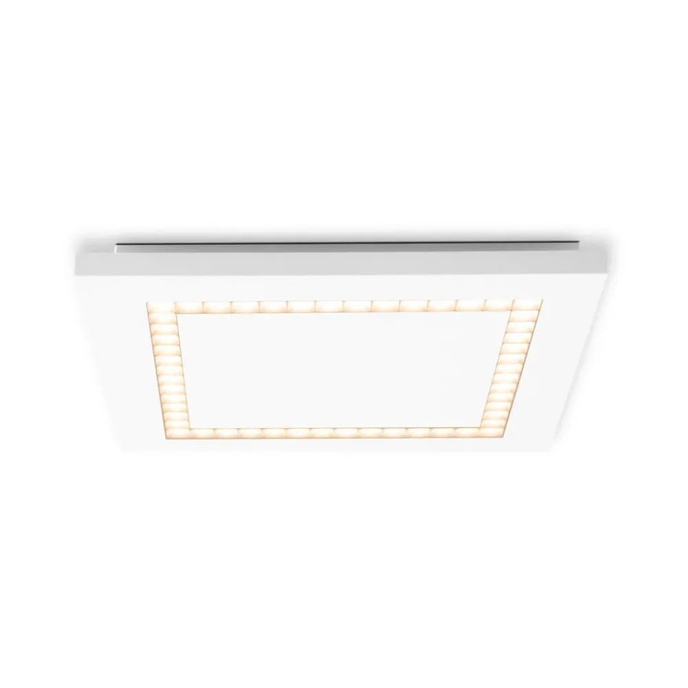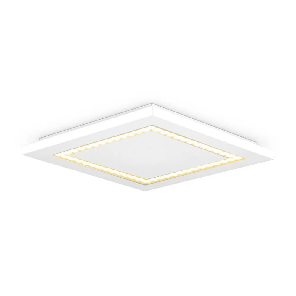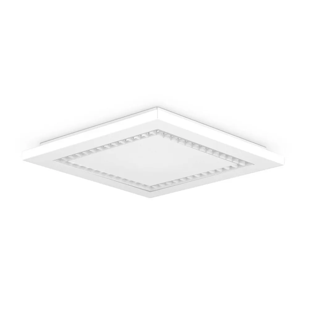 Den hvide, kantede LED-loftlampe ALQ er et overflademonteret panel lavet af hvid plastik, som kan bruges i loftet eller på væggen. Samlingen er optisk elegant uden synlige skruer. Det meget vidstrålede LED-panel er ideelt til generel belysning i arbejdsrum, gange, kontorer, receptioner og korridorer. Armaturet er udstyret med et LED-kontroludstyr, der muliggør ekstern dæmpning via fasestyring eller fasestyring.