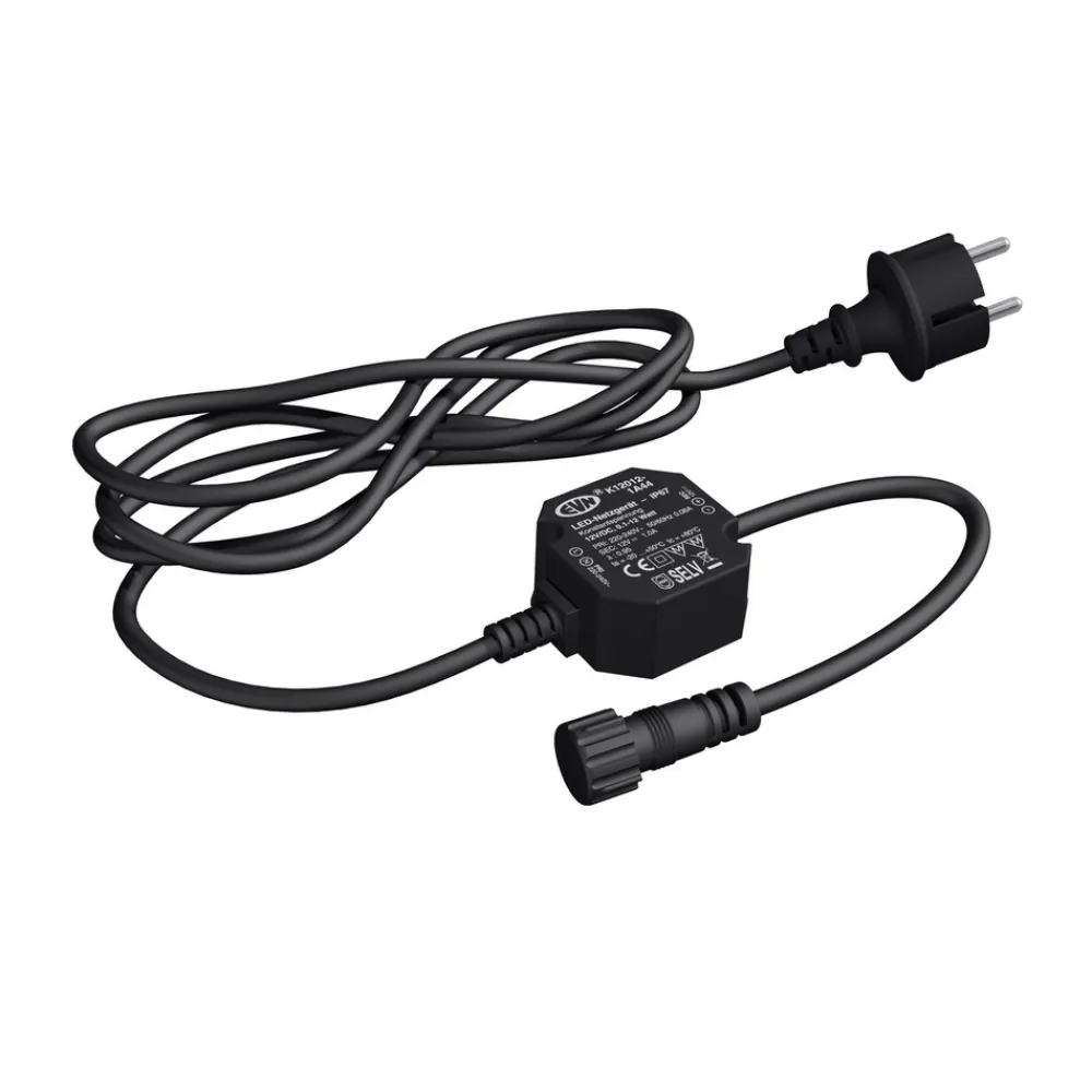 LED-strømforsyningsenhed K12012-1A44 med sokkel til IP44-stiksystem, 12V/DCT LED-strømforsyningsenheden K12012-1A44 fra EVN gør det muligt at drive armaturer med en spænding på 12V/DC. Den er designet til IP44-stiksystem og leveres med en tilsvarende stikkontakt.Tekniske egenskaber / karakteristika- med stikkontakt til IP44-stiksystem- udgangseffekt: 0,1 – 12 W- udgangsspænding: 12V/DC- forsyningsspænding: 220 til 240V/AC- temperaturområde: -20 til 50 °C- uden dæmpningsfunktion