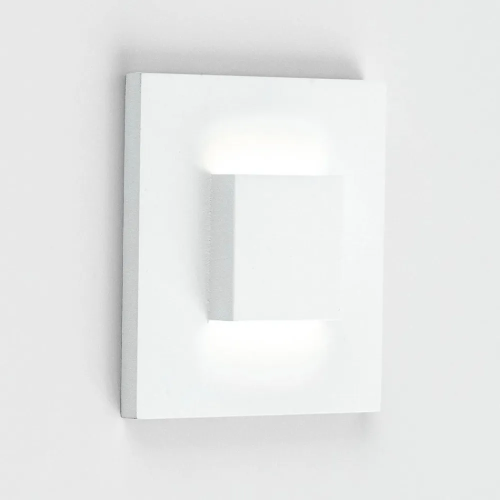 Square LQ230 LED-vægindbygningslampe med indirekte lys foroven og forneden LQ230 LED-vægindbygningslampen udsender lys symmetrisk både opad og nedad, hvilket giver en behagelig orienteringsbelysning i f.eks. en gang eller korridor i en virksomhedsbygning. Med sit diskrete, moderne design passer den harmonisk ind i mange miljøer. Afdækningsrammen er lavet af rustfrit stål, og en magnet sikrer nem installation. LQ230 kan skrues fast på væggen eller installeres i afbryderbokse. Lysdioderne er placeret bag opale plastdæksler. En forsegling på bagsiden sikrer beskyttelse mod stænkvand (IP44) – Gennemfortrådning mulig – Direkte tilslutning: 230 V – Kan også bruges i møbelkonstruktion