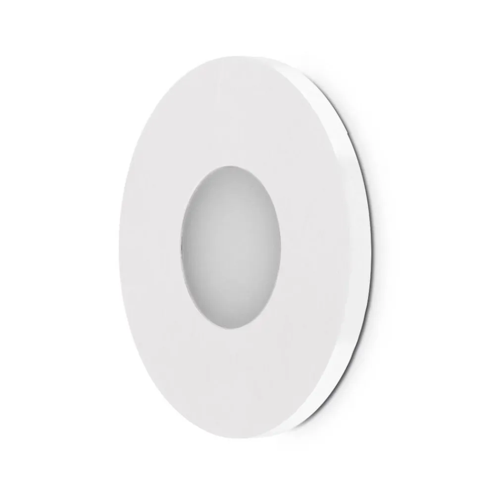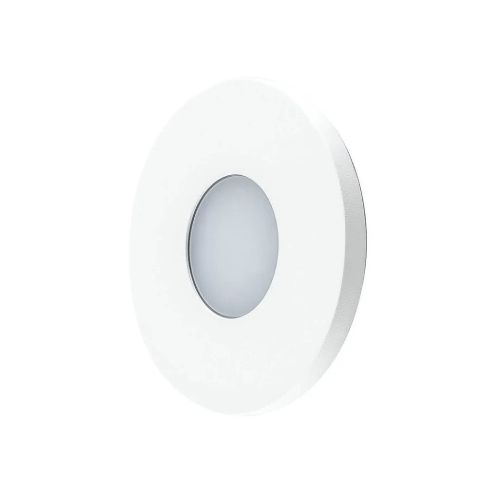 Rund LED-vægindbygningslampe LR230 – direkte lys til orientering LED-vægindbygningslampen LR230 er både visuelt og funktionelt ultramoderne. Uanset om det er i gangen i et hjem eller i korridoren på et hotel eller i en virksomhedsbygning, giver det moderne indbyggede armatur diskret og nyttig orienteringsbelysning. LR230 kan monteres direkte på væggen med to skruer bag den magnetiske afdækning i rustfrit stål. Det indbyggede lys kan også installeres på en afbryderboks. Beskyttelsesklasse IP44 opnås takket være en indbygget tætning på bagsiden. LED’erne er placeret bag et opalt plastdæksel – Symmetrisk, direkte og diffust lysudslip – Mulighed for gennemfortrådning – Direkte tilslutning til 230 V – Kan også bruges i møbelbyggeri