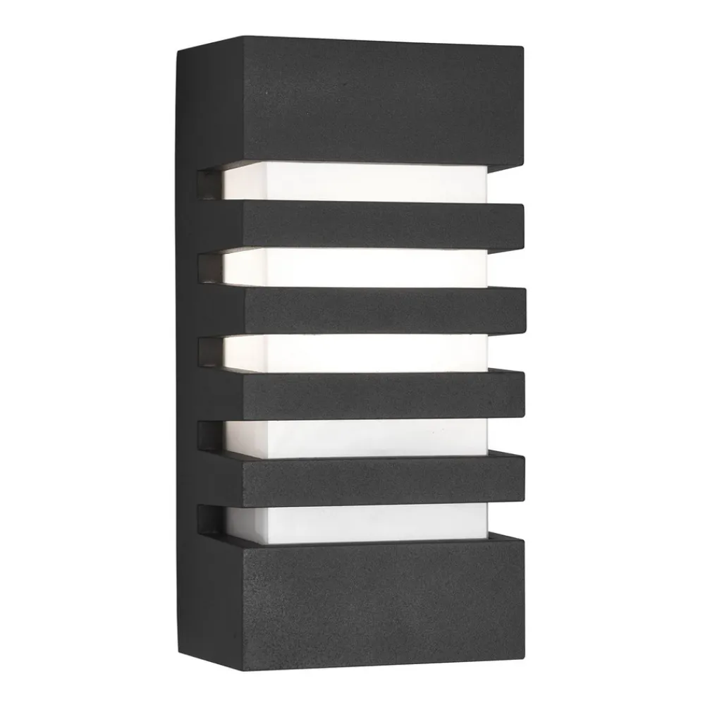 Exeter udendørs væglampe er alsidig og kan kombineres med moderne vægdesign. Den består af et rektangulært hus af aluminium i mørkegrå, som er udstyret med en rillet front, bag hvilken den hvide skærm af polycarbonat udsender lyset fra den indsatte lampe uden at blænde. Exeter udendørs væglampe er udstyret med beskyttelsesklasse IP54 og kan bruges overalt.