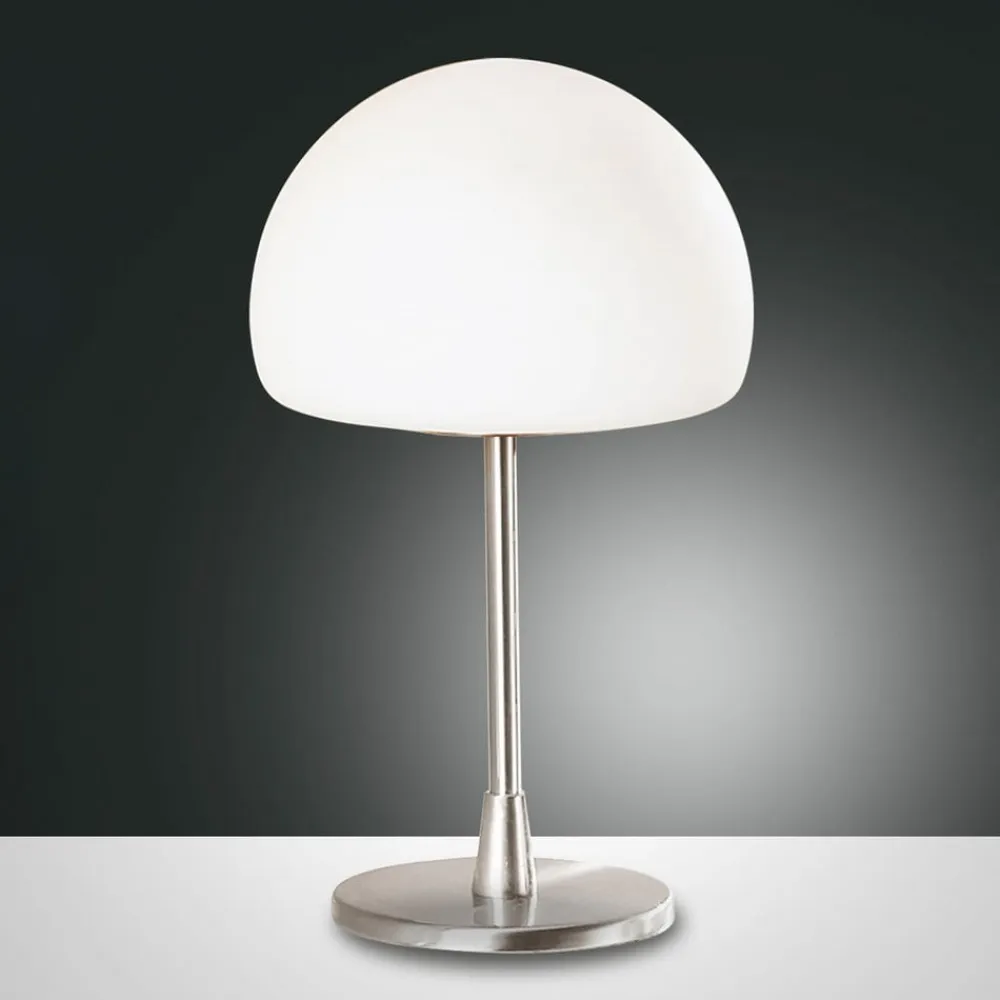 LED-bordlampe Gaia har en 3-trins berøringsdæmper, takket være hvilken en individuel lysstyrkejustering af lampen er mulig. Visuelt præsenterer det sig i et klassisk, tilbageholdende design. En simpel metalbase blev kombineret med en halvkugleformet, satineret glasskærm. Gaia kan bruges til forskellige formål. Det giver et fremragende læselampe i soveværelset på sengebordet eller som en diskret lyskilde i stuen på vindueskarmen. Uanset hvor denne lampe finder sit nye hjem, udsender den et varmt lys og skaber en indbydende atmosfære. Denne lampe har en udskiftelig G9 LED-lyskilde.