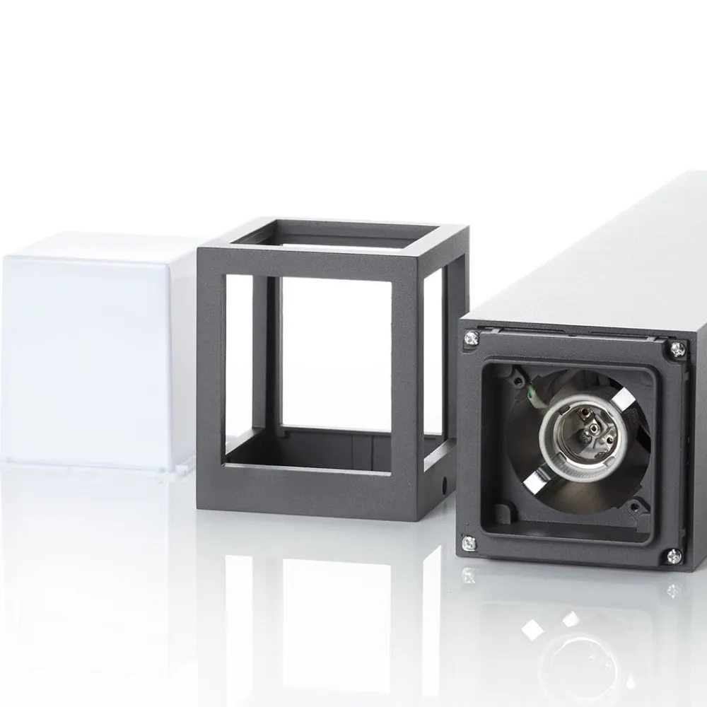 Designet på denne lampe er baseret på enkle geometriske former og kombinerer en ren stil med maksimal funktionalitet. Takket være kapslingsfaktoren IP54 er Onze ikke kun beskyttet optimalt mod støv, men også mod indtrængning af sprøjtevand. Den er således designet til udendørs brug hele året rundt. En kombination af vejrbestandig aluminium og en diffusor fremstillet af robust plast i opal-look giver øget stabilitet og et behageligt lys, der ikke blænder.