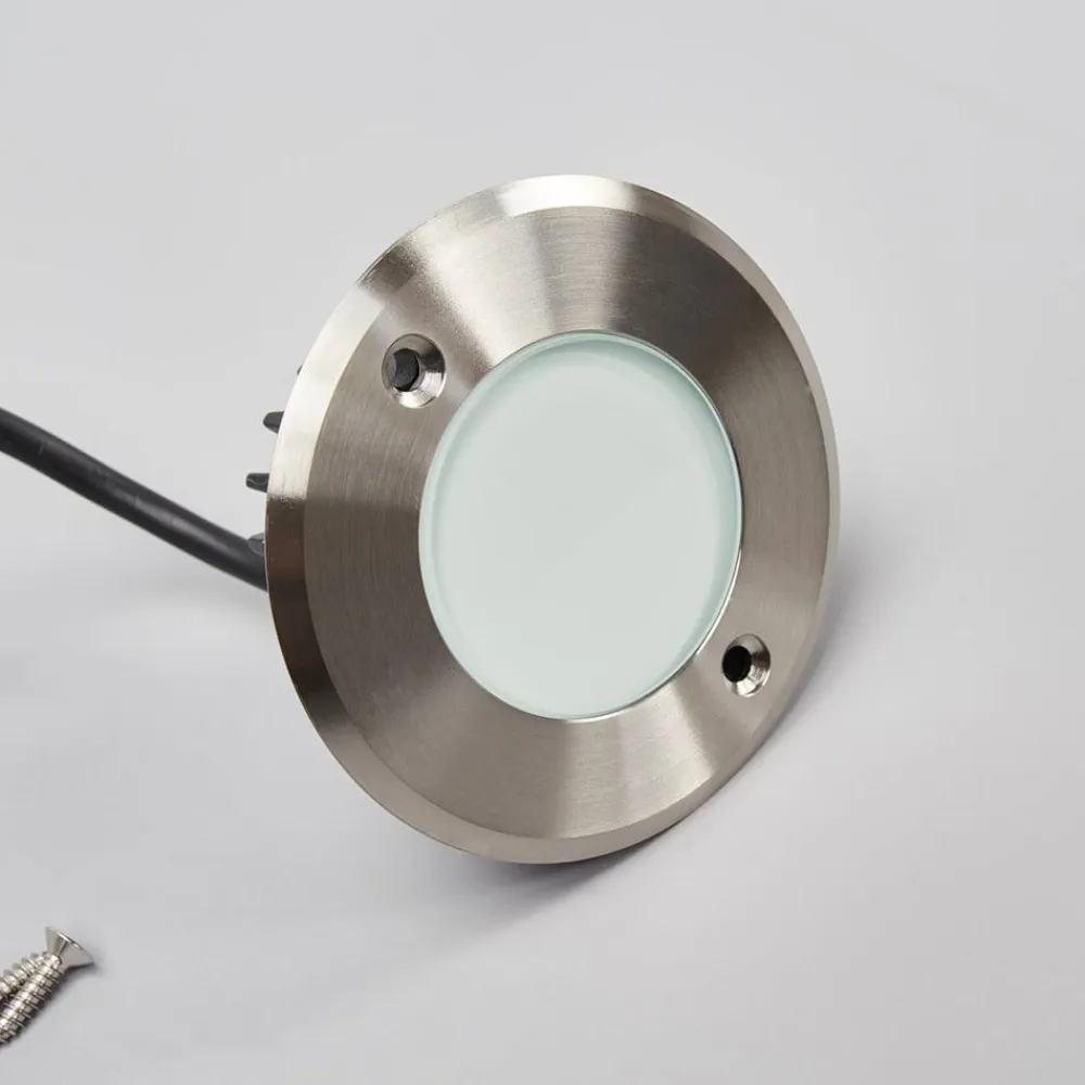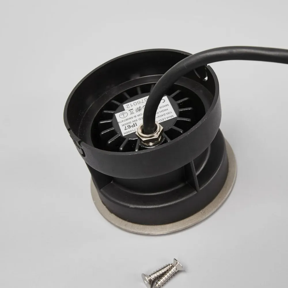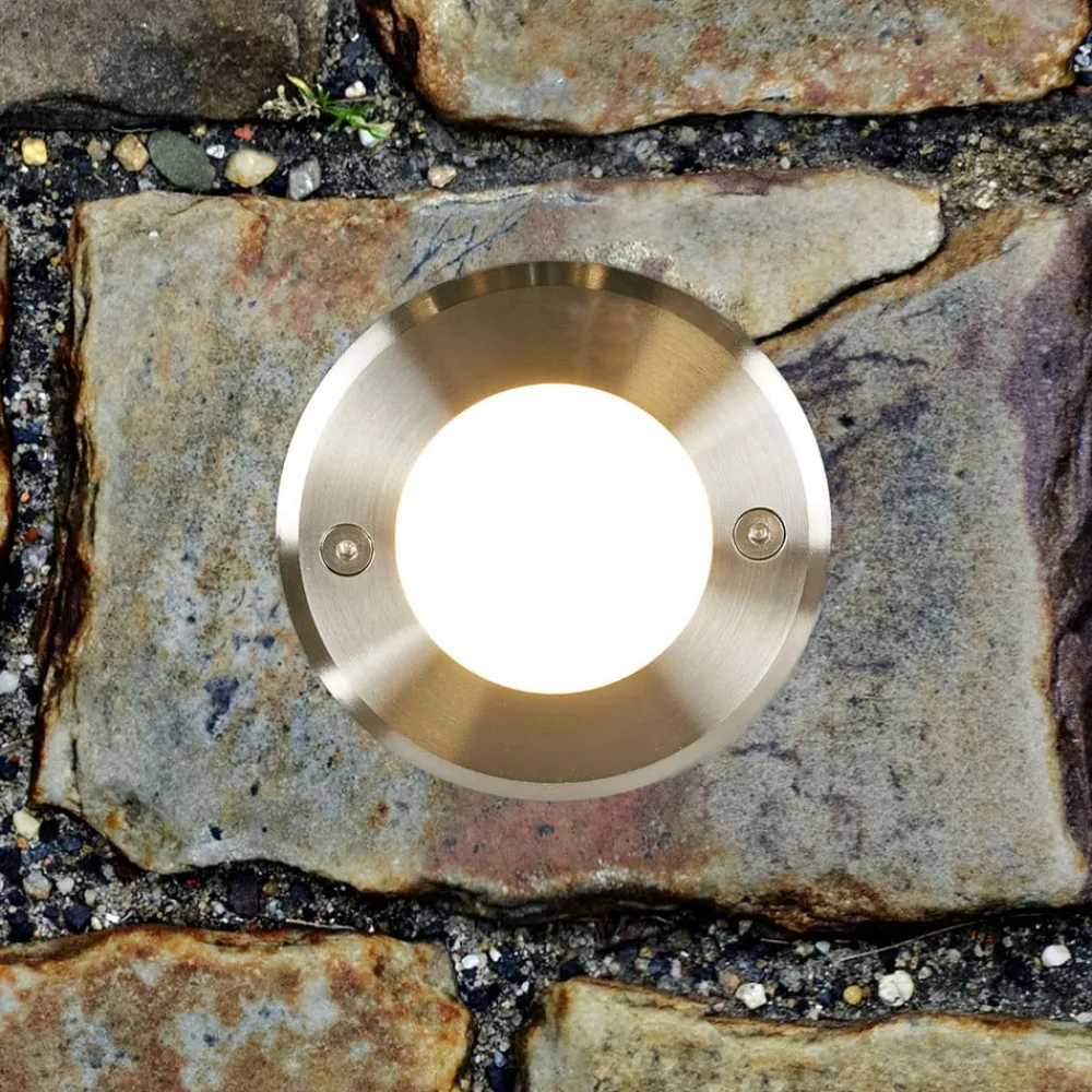 Med ca. 3.000 Kelvin giver den indbyggede LED-lysteknik i nedgravningslampen et behageligt varmhvidt lys og sikrer dermed tilstrækkelig belysning i haven eller indkørslen. Den runde ramme i rustfrit stål i mat nikkel passer smukt til den hvide polycarbonatskive. Denne sikrer desuden et behageligt blændfrit lys. Den maksimale belastning på 1.000 kg og kapslingsgraden IP67 gør LED-nedgravningslampen LED-18 til en meget robust lampe.