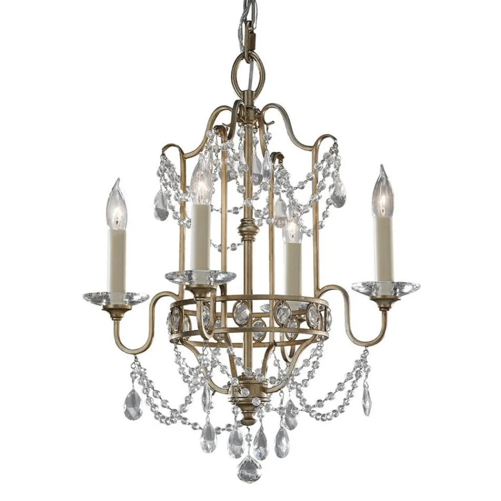 lysekrone Gianna med fire flammer med overdådig krystaldekoration