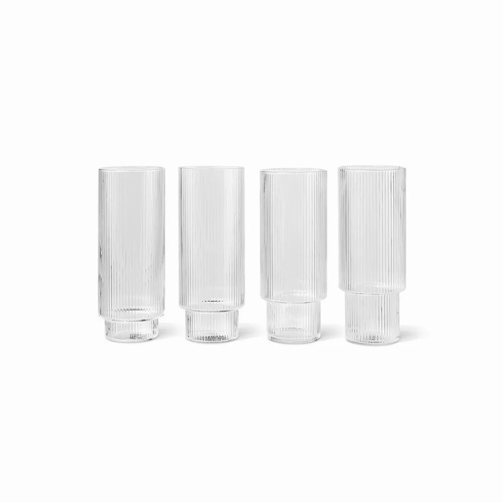ferm LIVING Longdrink-glas Ripple, klar, 300 ml, glas, sæt med 4 stk