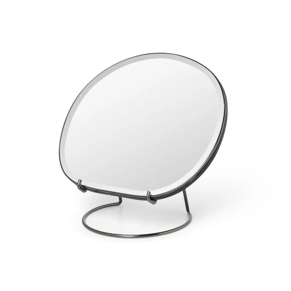 - Spejlglas på MDF-stativ med zinkramme. Spejlet kan tages af stativet.