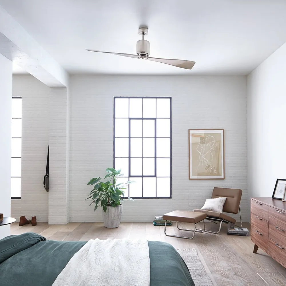 Takket være den store diameter sikrer den diskret designede Ferron loftventilator med to lange vinger af polycarbonat tilstrækkelig luftcirkulation selv i rum på op til 30 m². Ferron leveres med en fjernbetjening.