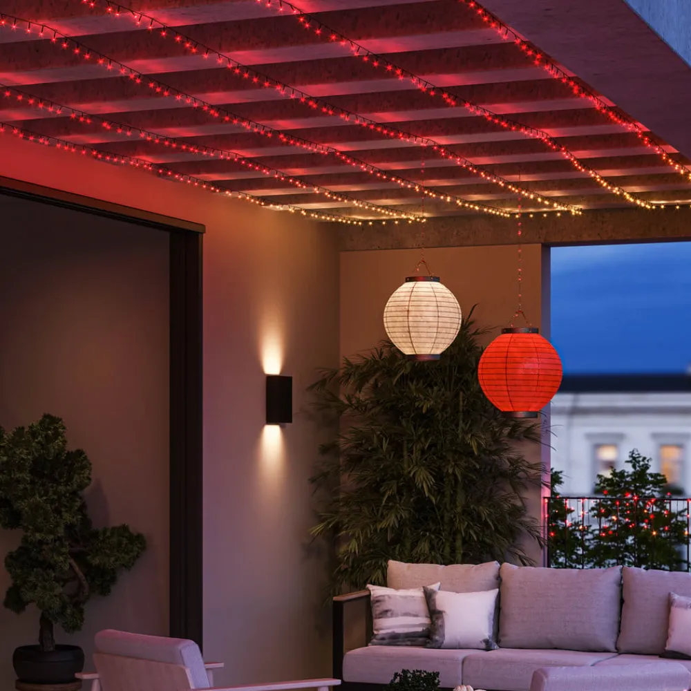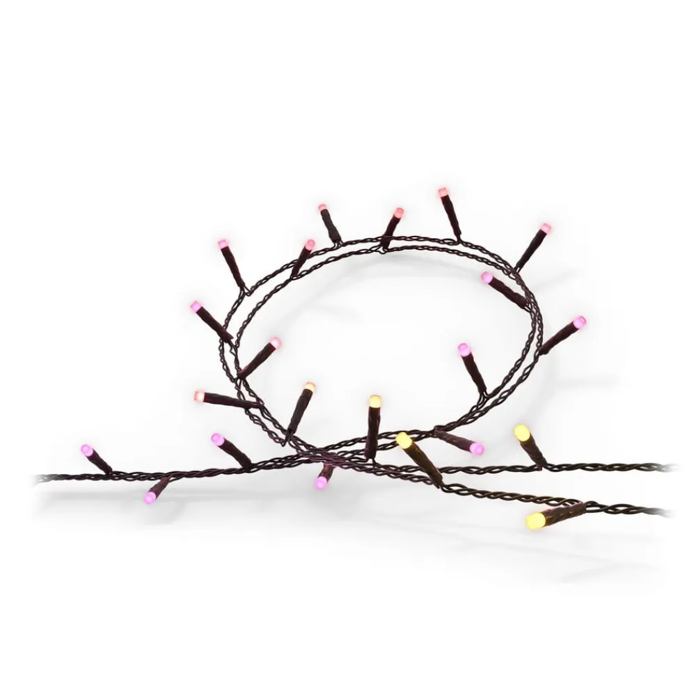 - Består af to smarte LED-lyskæder, hver med en længde på 20 meter, som kører fra en fælles strømforsyningsenhed.