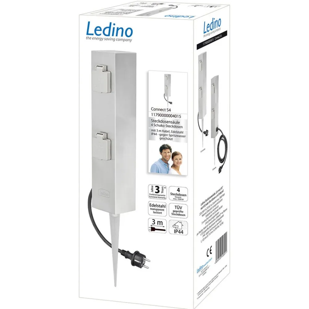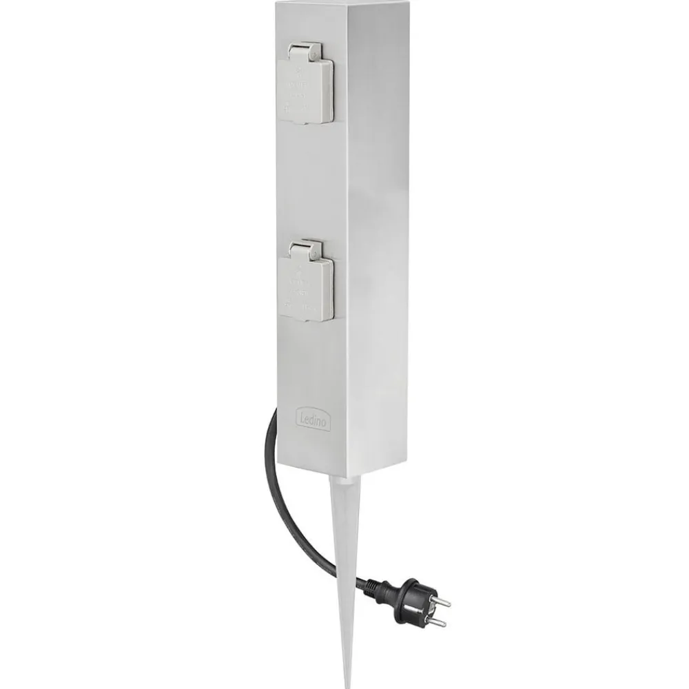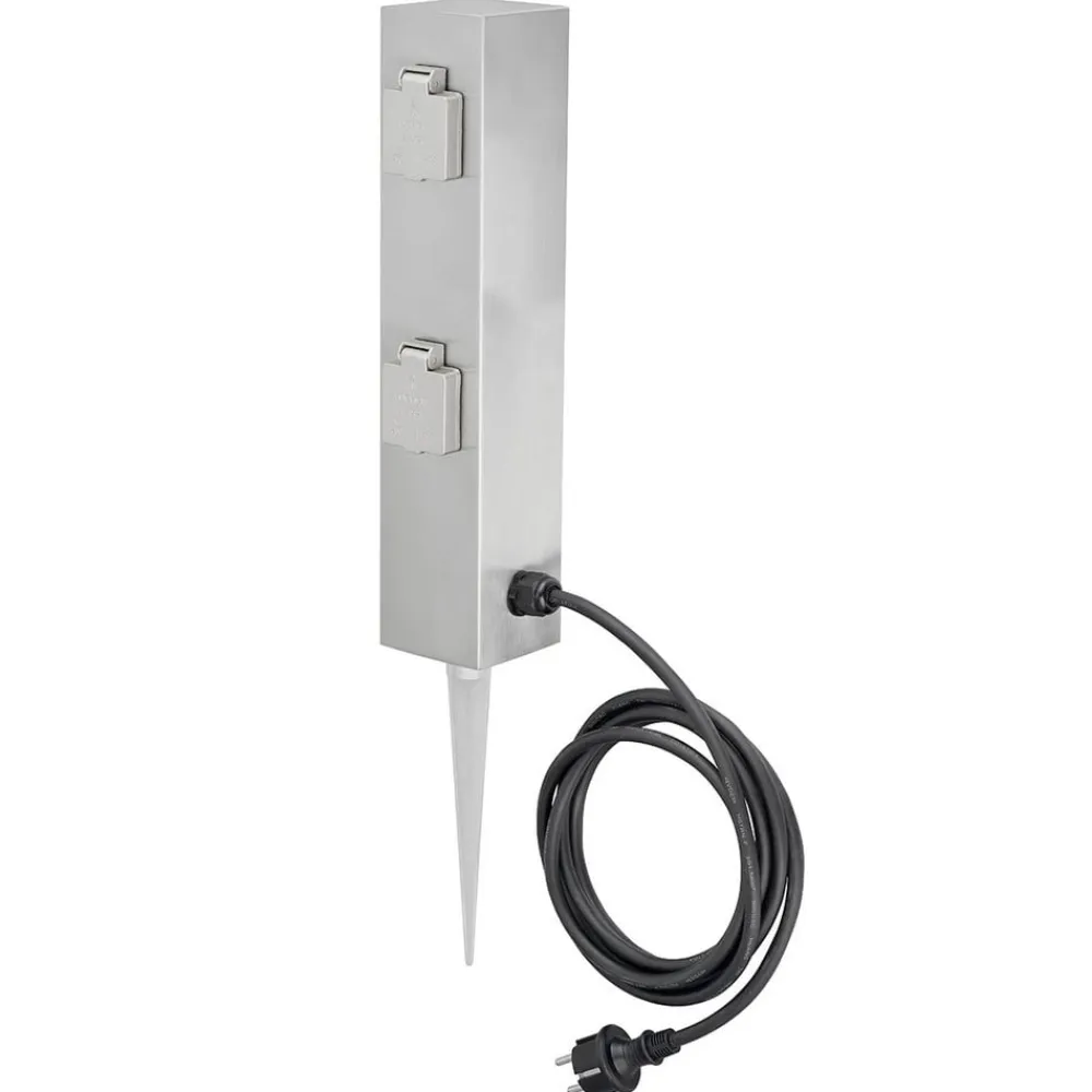 Praktisk Connect S4-stikkontaktsøjle – ideel til mobil udendørs brug Det slanke hus i rustfrit stål med en satineret overflade giver denne model et stilfuldt og moderne look. Connect S4 firedobbeltstikdåse er kendetegnet ved en høj belastningskapacitet på op til 3.500 watt og kan sættes op med få enkle trin takket være jordspyddet. IP44-beskyttelsesfaktoren angiver dens høje modstandsdygtighed over for støv og vandstænk. Det praktiske hængslede dæksel giver ekstra beskyttelse til stikkontakterne. De intelligent placerede stikkontakter er designet til alle typer tilslutninger, herunder f.eks. timere. Det tre meter lange forsyningskabel giver ekstra fleksibilitet. Uanset om det er til en udendørs fest, en begivenhed eller permanent udendørs brug – Connect S4-søjlen med fire stikkontakter er det perfekte valg, hvor flere elektriske apparater skal tændes på samme tid.