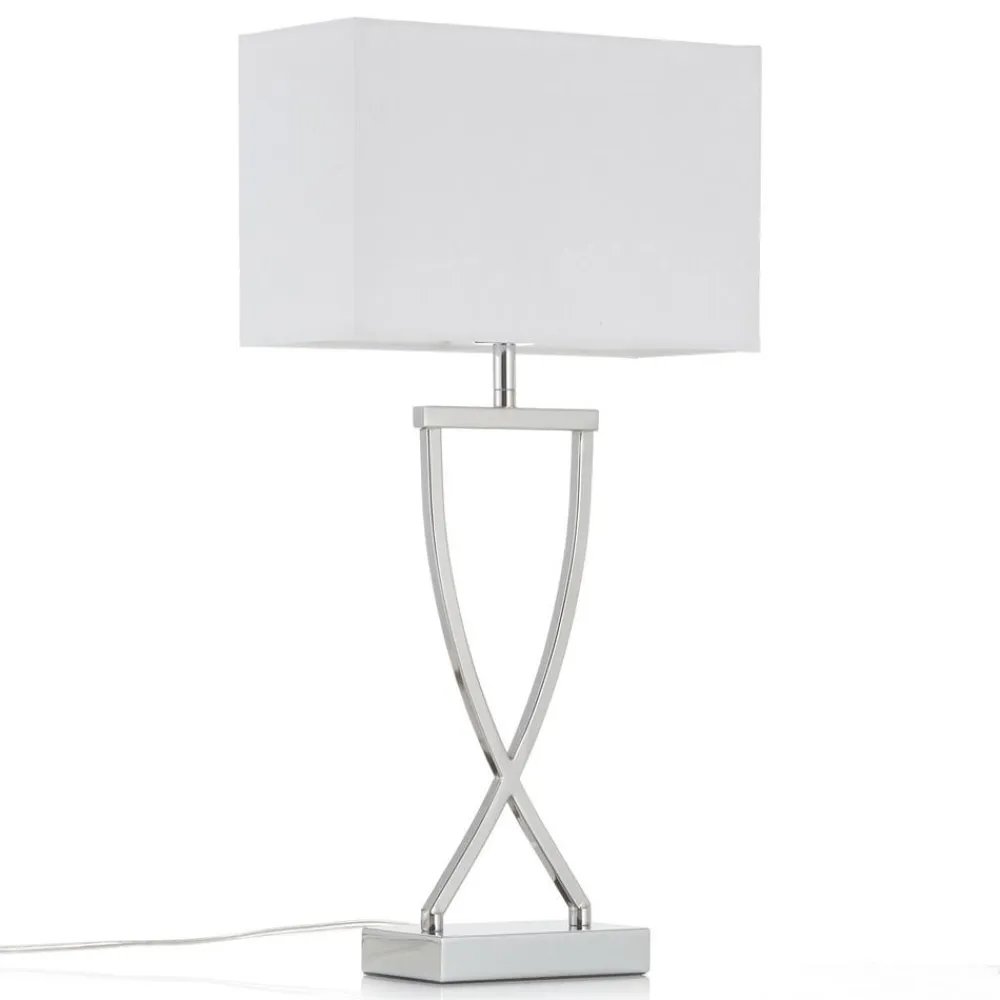 Bordlampen Anni med tekstilskærm i krom/hvid