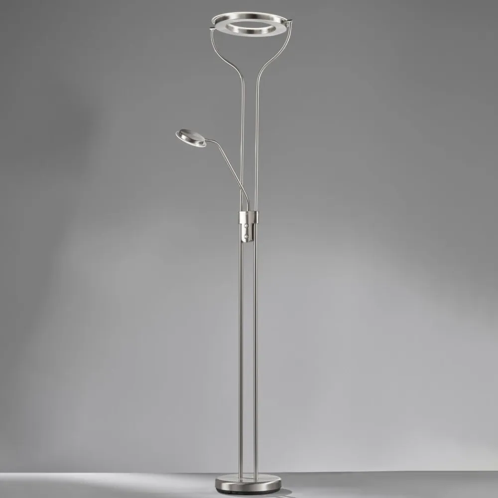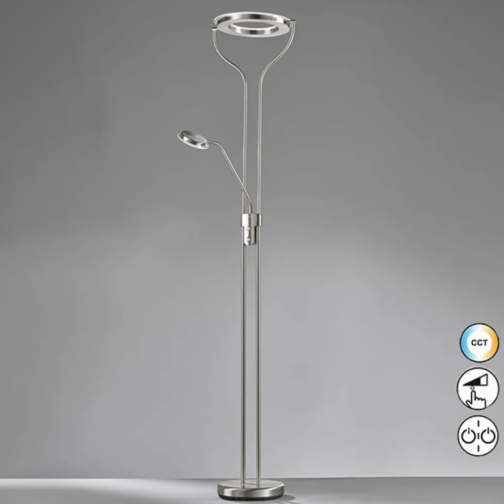 Den moderne LED-gulvlampe Davos er udstyret med en uplight og en LED-læselampe. Dette garanterer en indirekte lysafgivelse opad mod loftet for en stemningsfuld lyseffekt og en passende lysspredning gennem læselampen. Begge lyskilder kan tændes og dæmpes separat.